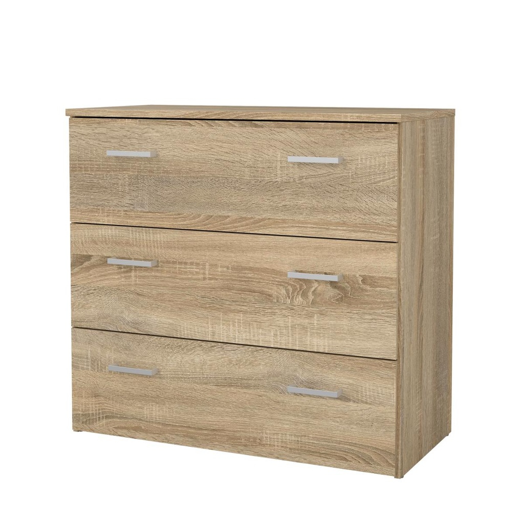 Komoda Sid představuje praktické a elegantní řešení úložného prostoru pro každý interiér. Díky svým kompaktním rozměrům se snadno umístí i do menších místností, přitom nabízí dostatek místa pro uspořádání vašich věcí v třech prostorných zásuvkách. Kvalitní dřevěná konstrukce zajišťuje dlouhou životnost a pevnost nábytku.