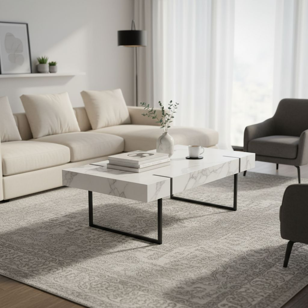 Tento stolek na první pohled zaujme svým elegantním vzhledem. Díky minimalistickému mramorovému designu je vhodný do kanceláře, reprezentativních prostor i domácností. Horní desku s imitací mramoru doplňují odolné kovové nohy z práškované oceli. Údržba těchto materiálů je snadná. Nosnost stolku je až 20 kg.