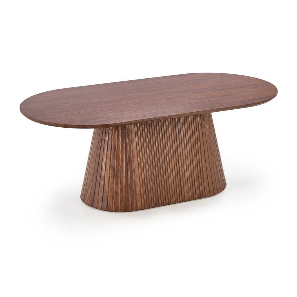 Konferenční stolek Brigham nabízí dokonalou kombinaci moderního designu a praktické funkčnosti. Jeho oválná horní deska z kvalitního dřeva poskytuje dostatek prostoru pro dekorace, nápoje i drobné předměty. Podnož ze dřeva je pevná a stylová, což zajišťuje stabilitu a dlouhou životnost stolku.