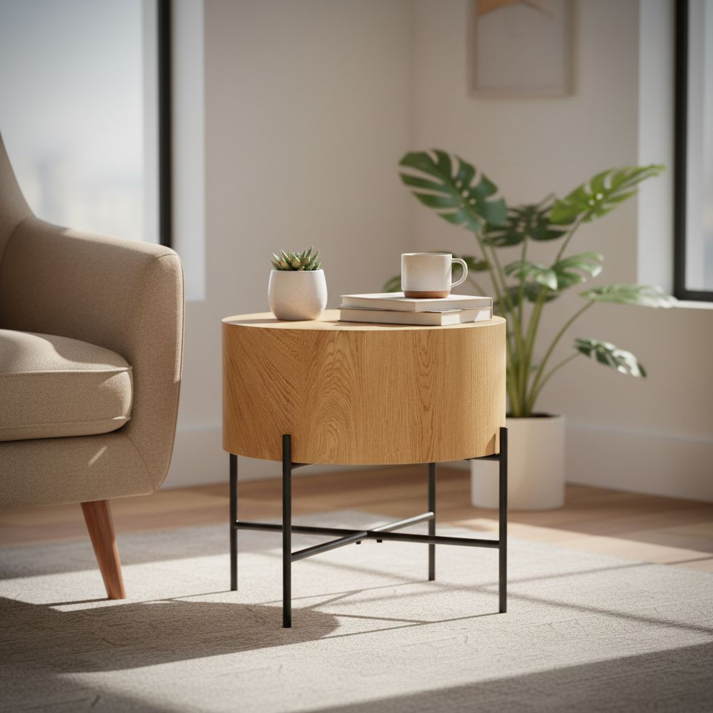 Tento kulatý konferenční stolek je zkonstruován z dýhované MDF desky se vzorem přírodního dubu a práškované oceli. Díky jeho naturalistickému vzhledu zapadne prakticky kamkoli. Skvěle vynikne ve vstupních halách, čekacích prostorech, kancelářích i v restauracích, kavárnách a čajovnách.