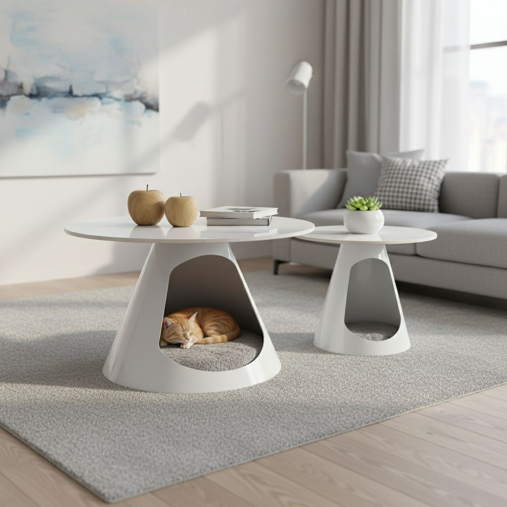 Podnože mají podobu dutých kuželů z práškované ocele. Vnitřek je přístupný, takže ho můžete využít k uložení věcí, které nechcete na stole – a kdo ví, třeba si tenhle úkryt zamilují i vaši mazlíčci!