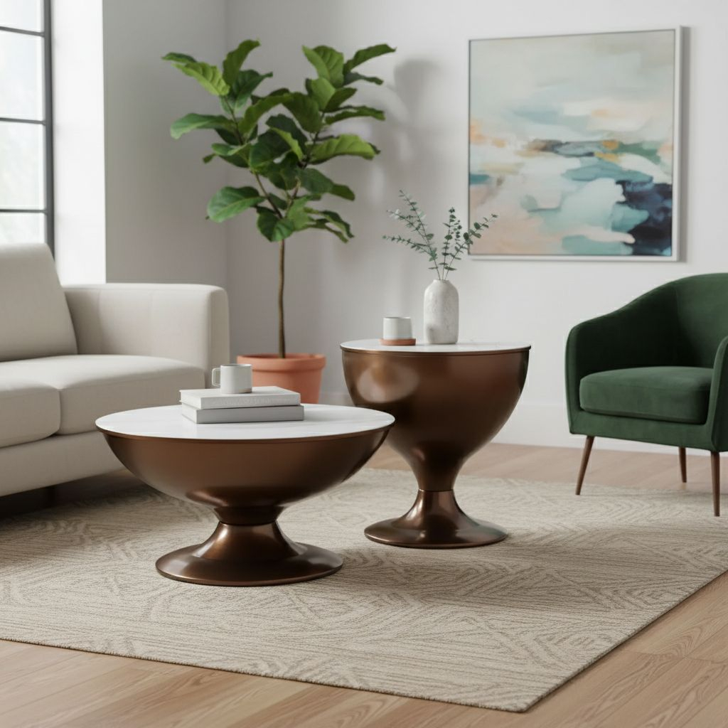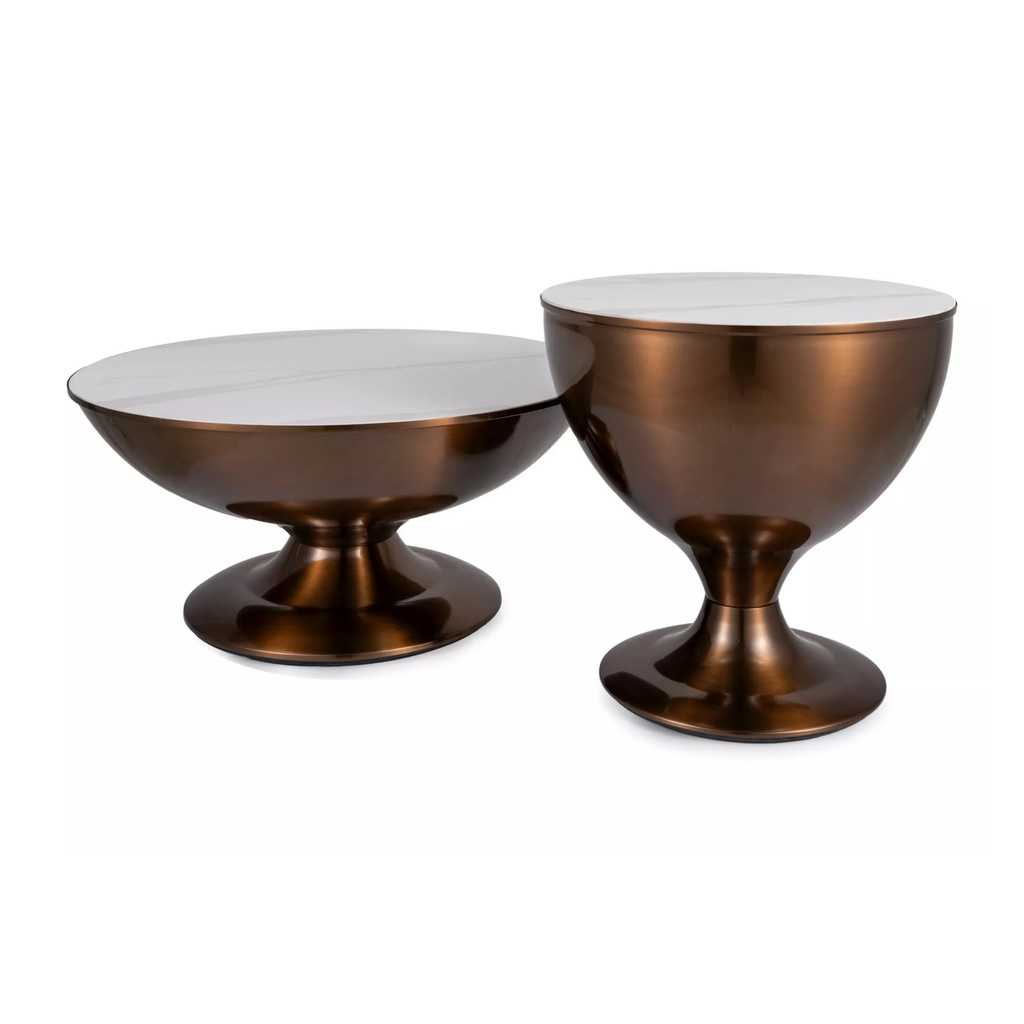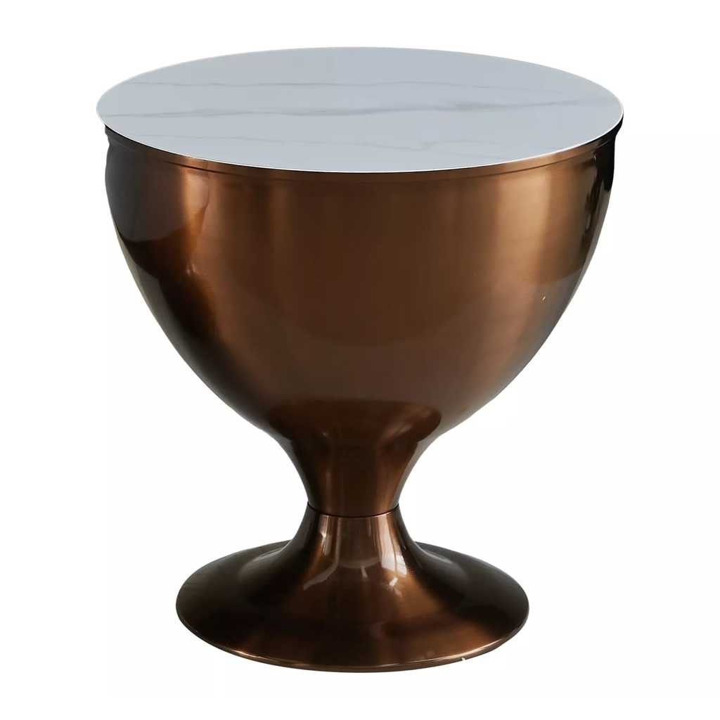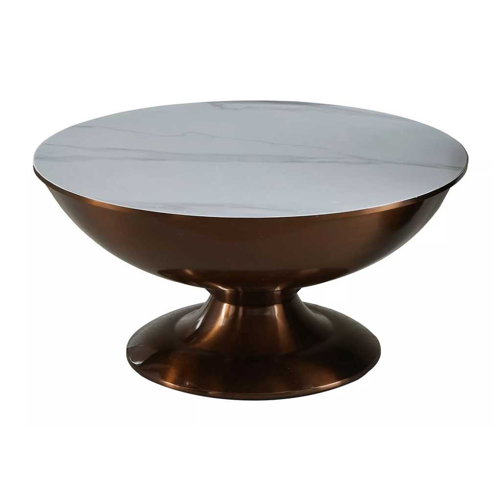 Konferenční stolek Calvari zaujme svým moderním a originálním designem, který využívá kvalitní keramickou horní desku a pevnou kovovou podnož. Jeho kulatý tvar a efekt mramoru dodávají stolku elegantní vzhled vhodný do různých interiérů. Díky rozměrům 75 x 75 cm a výšce 38 cm je stolek praktický pro odkládání předmětů během setkání nebo k odpočinku u kávy.