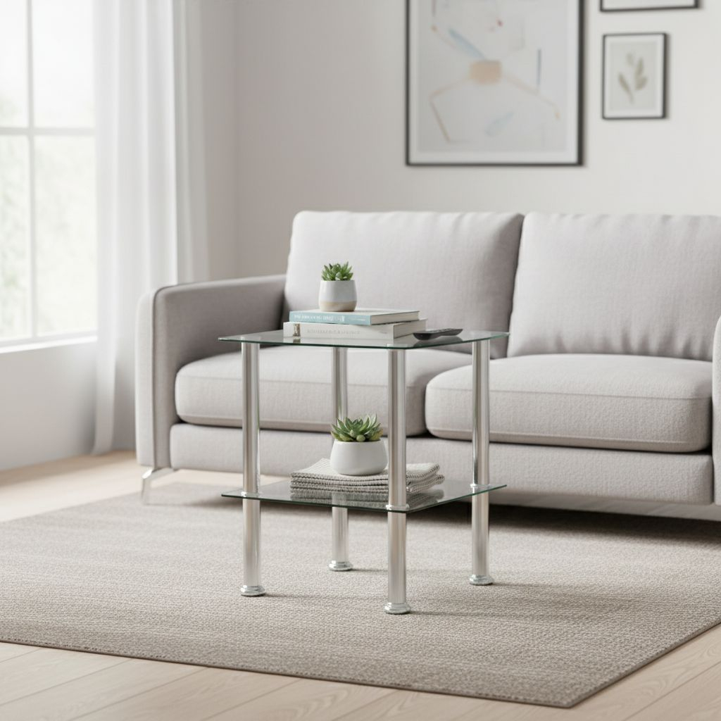 Skleněný konferenční stolek Canaria najde díky svým rozměrům uplatnění především v menších interiérech. Nabízí nejen úsporu místa, ale zároveň dostatek odkládacího prostoru. Jeho konstrukce je vyrobená z pevné nerezové oceli s chromovanou povrchovou úpravou, která se postará o celkovou stabilitu stolku. Praktická spodní police slouží jako úložné místo pro tiskoviny a jiné drobnosti. Tento stůl využijete jak v moderních firemních prostorech, tak v domácnosti jako odkládací stolek.