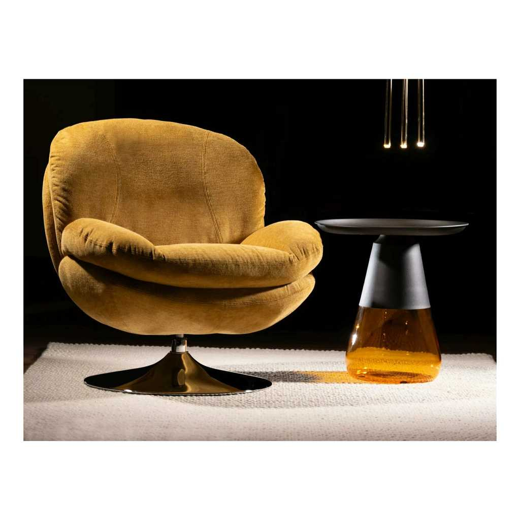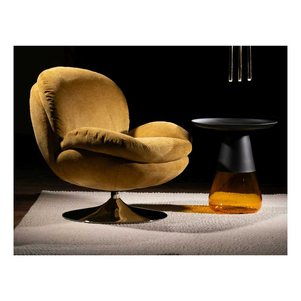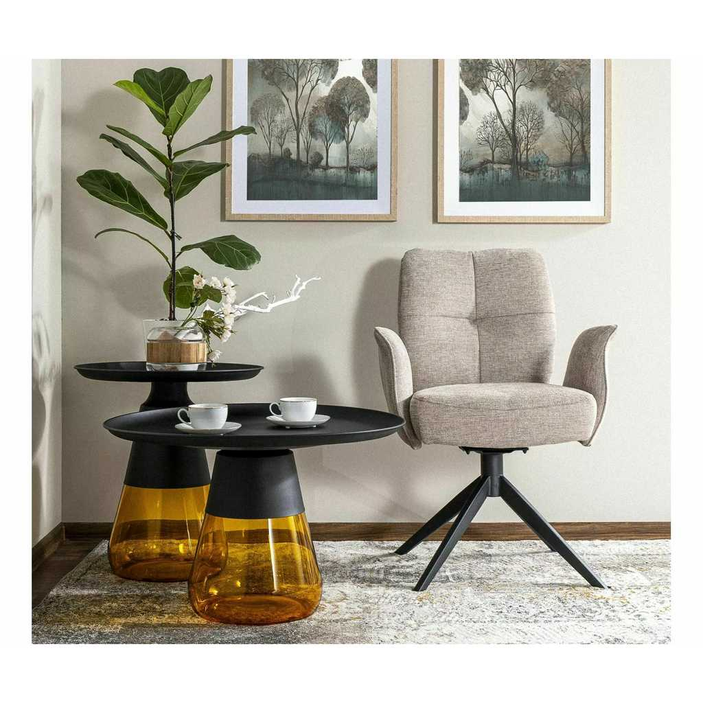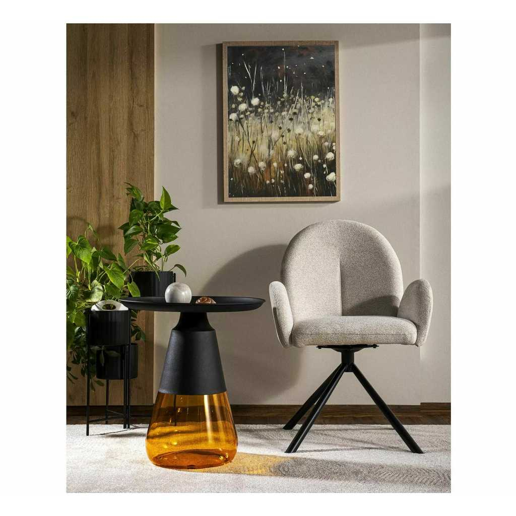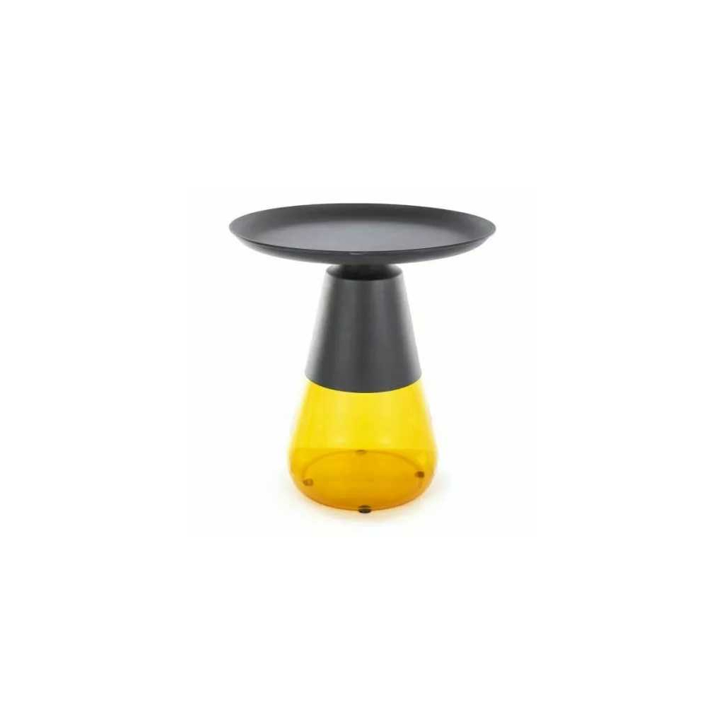 Jeho kovová deska je pevná a odolná, což zajišťuje dlouhou životnost a snadnou údržbu. Skleněná noha dodává stolku vzdušnost a stabilitu, díky které je Carini skvělým doplňkem do moderních i industriálních interiérů.