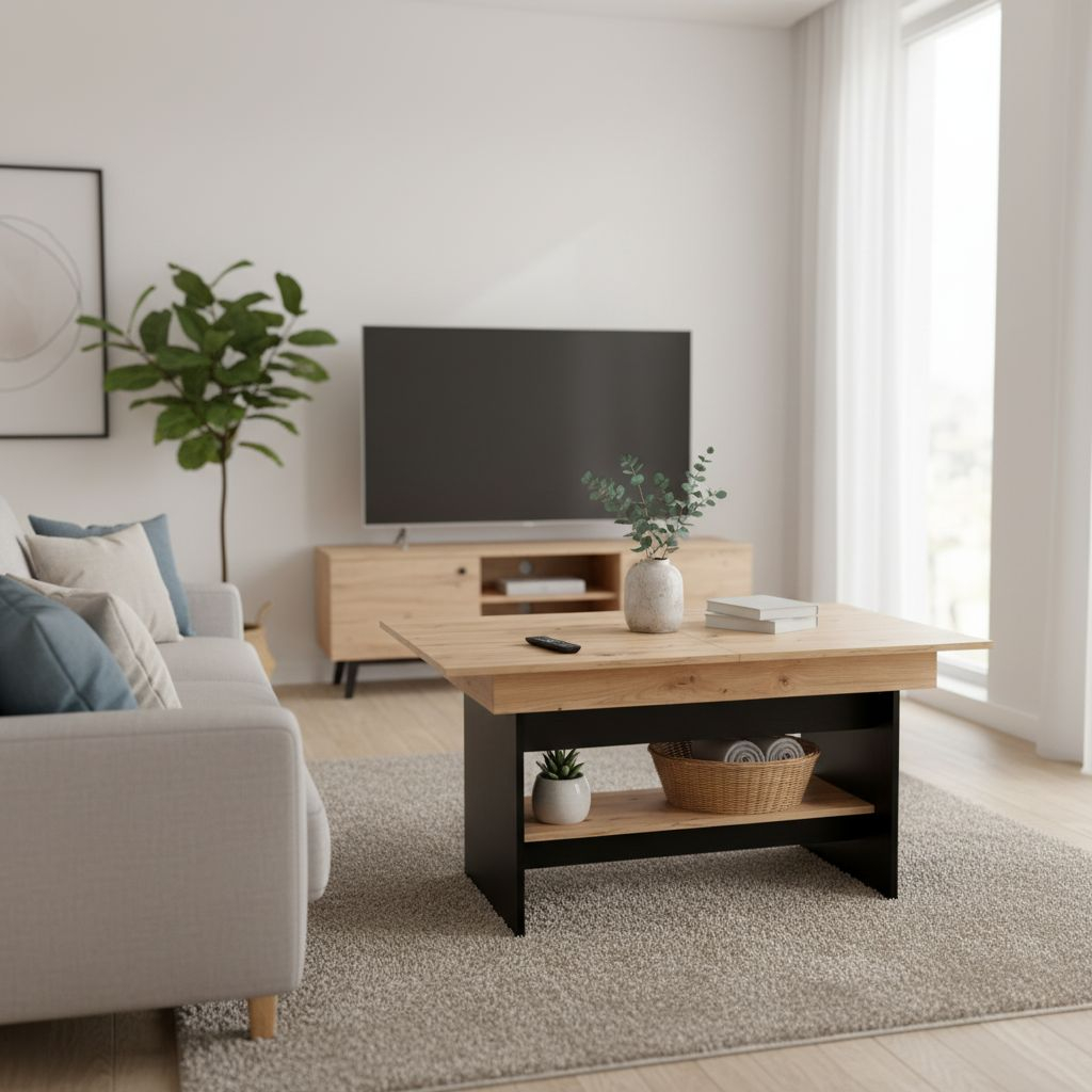 Konferenční stolek Celina je díky kombinaci funkčnosti a designu skvělou volbou pro každý interiér, který ocení praktičnost a kvalitní zpracování. Jeho rozkládací mechanismus vám umožní přizpůsobit velikost podle potřeby a dodá vašemu prostoru příjemnou dřevěnou atmosféru.