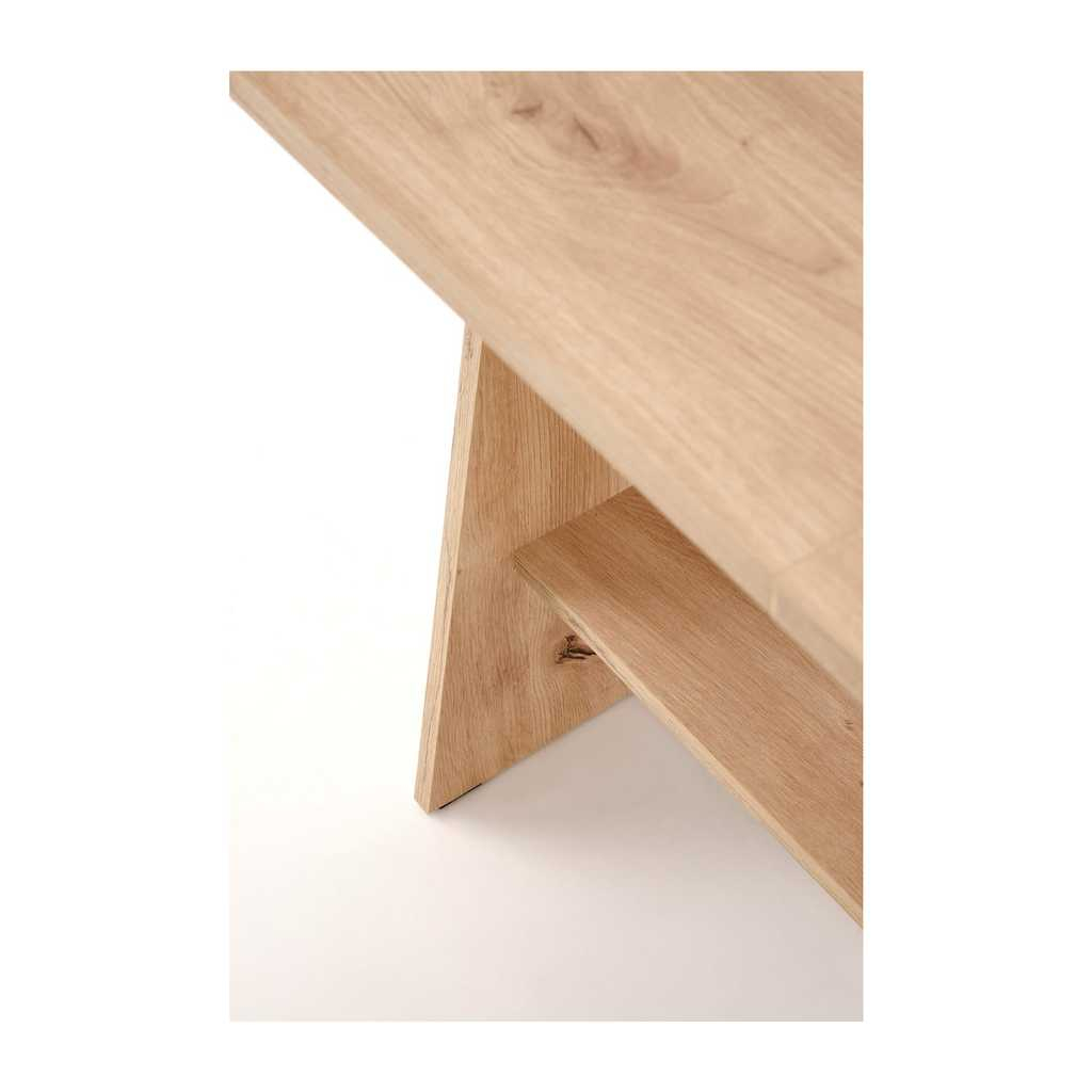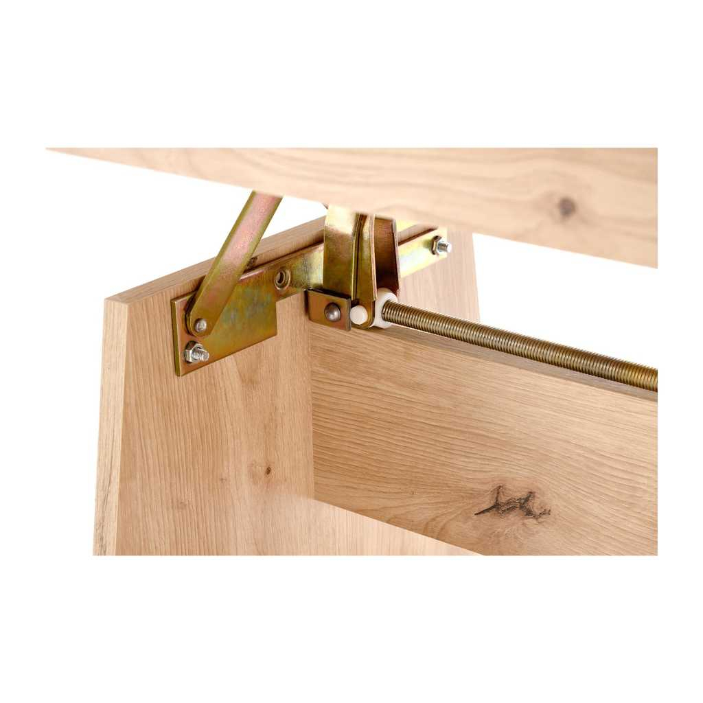 Design stolku se vyznačuje jednoduchým obdélníkovým tvarem horní desky a stabilní dřevěnou podnoží, která zajišťuje jeho pevnost a stabilitu v každé situaci. Nízká výška stolku při běžném používání a její zvýšení po rozložení spolu s nastavovací klikou jsou praktickými detaily, které zvýší váš komfort.