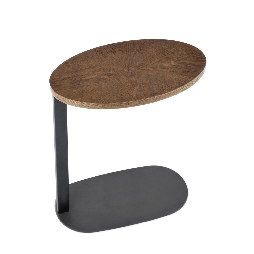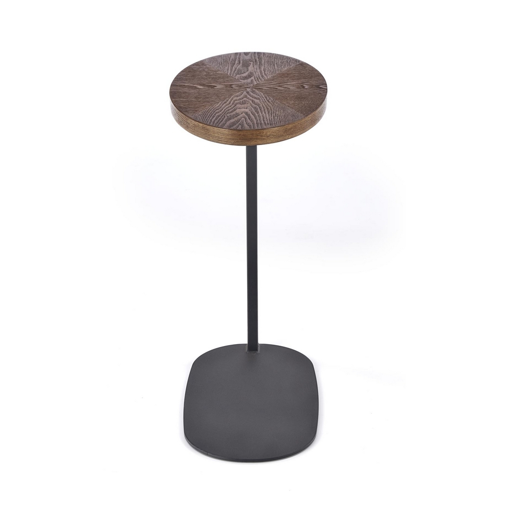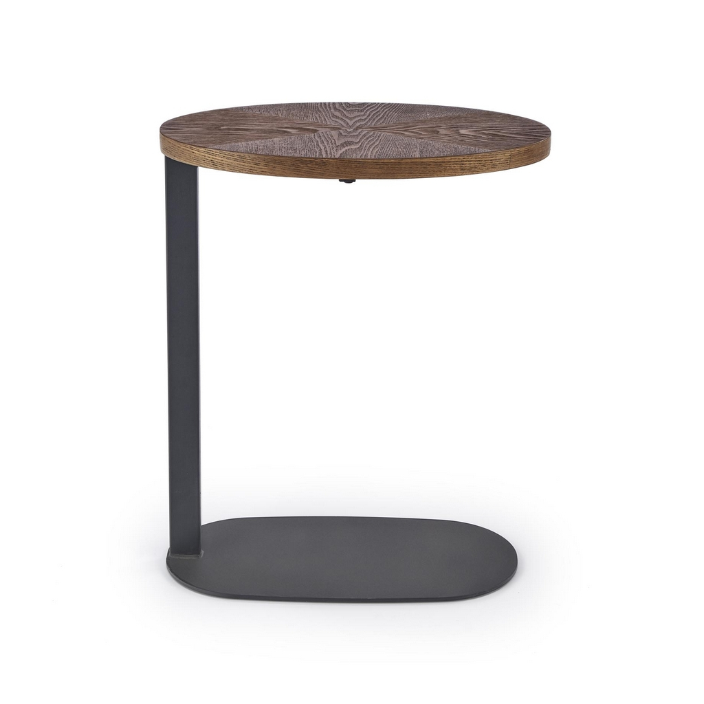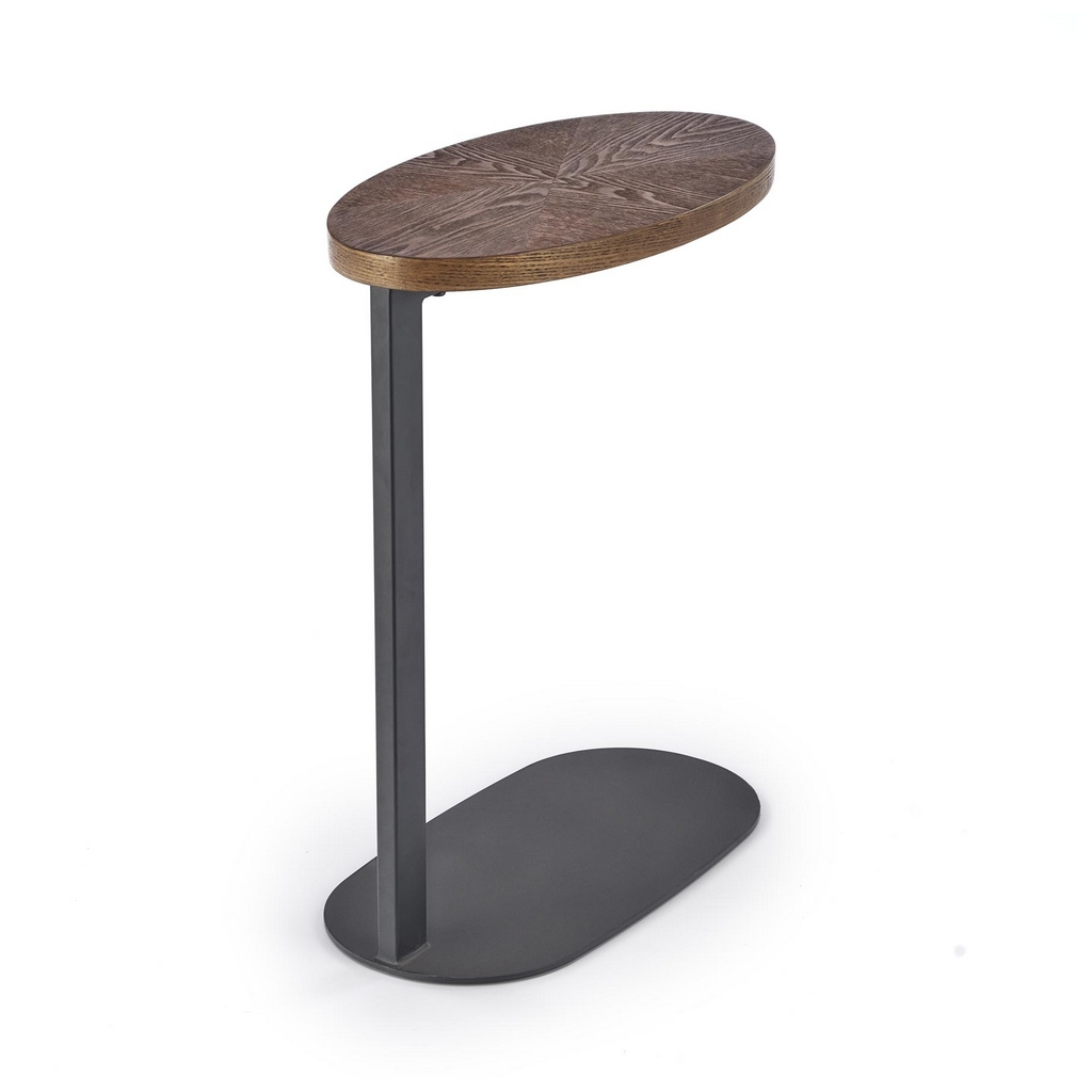 Oválná svrchní deska je z dýhovaného MDF (dřevovlákna) v dezénu ořechu. Struktura dýhy je ozvláštněná použitím více kusů, které na desce tvoří vzor ve tvaru X.