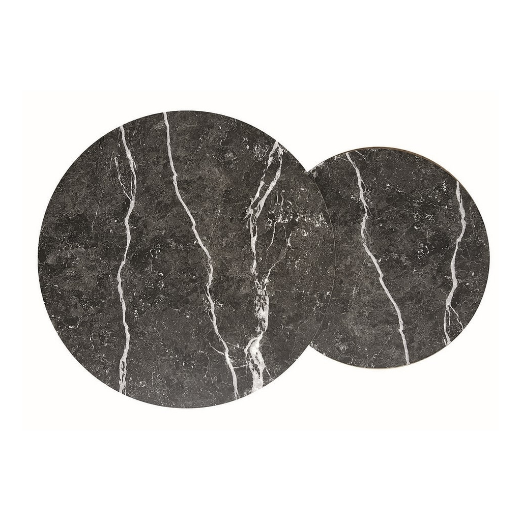 Oba stolky mají kruhovou desku z laminované dřevotřísky, kterou nese černá kovová podnož. Vybrat si můžete z několika barevných provedení.