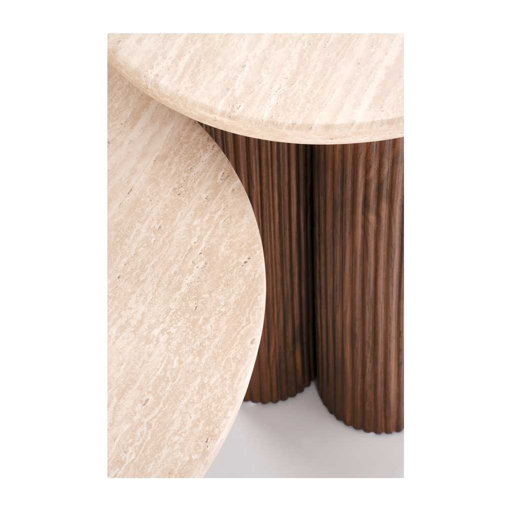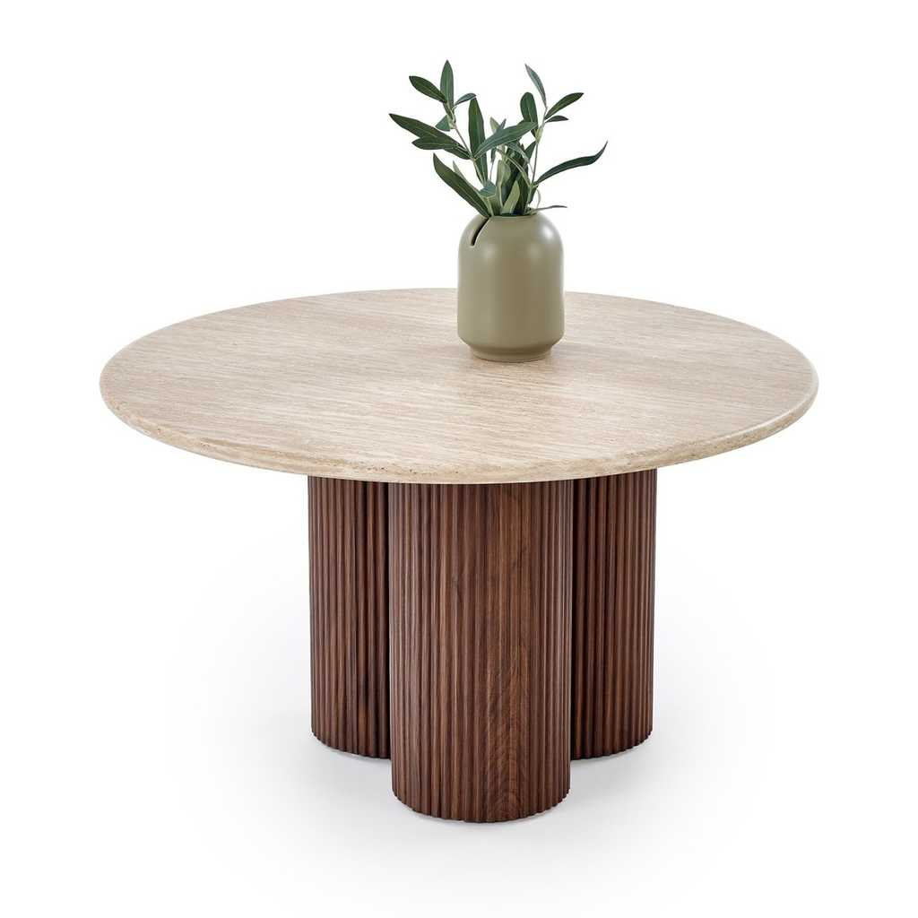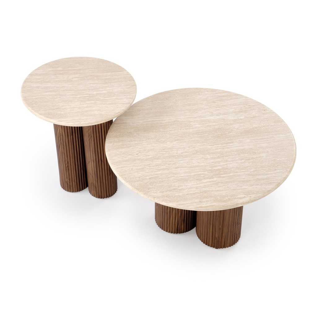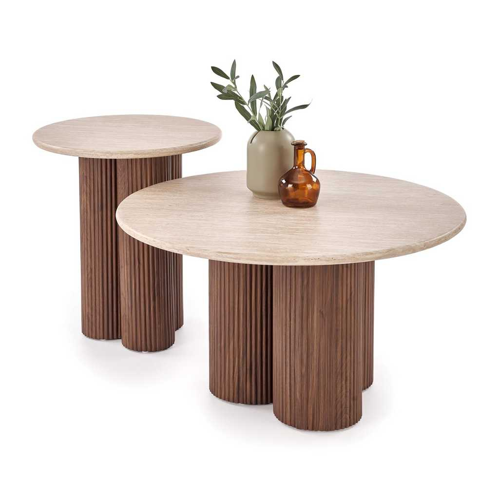 Konferenční stolek Donovan je elegantním a praktickým doplňkem do každého obývacího pokoje či kanceláře. Jeho originální kruhový tvar horní desky nabídne dostatek prostoru pro odložení nápojů, knih či dekorací. Díky použití dřeva na desce i podnoži působí stolek příjemně teplým a přírodním dojmem, který snadno zapadne do různých stylů interiéru.