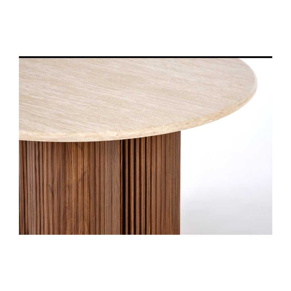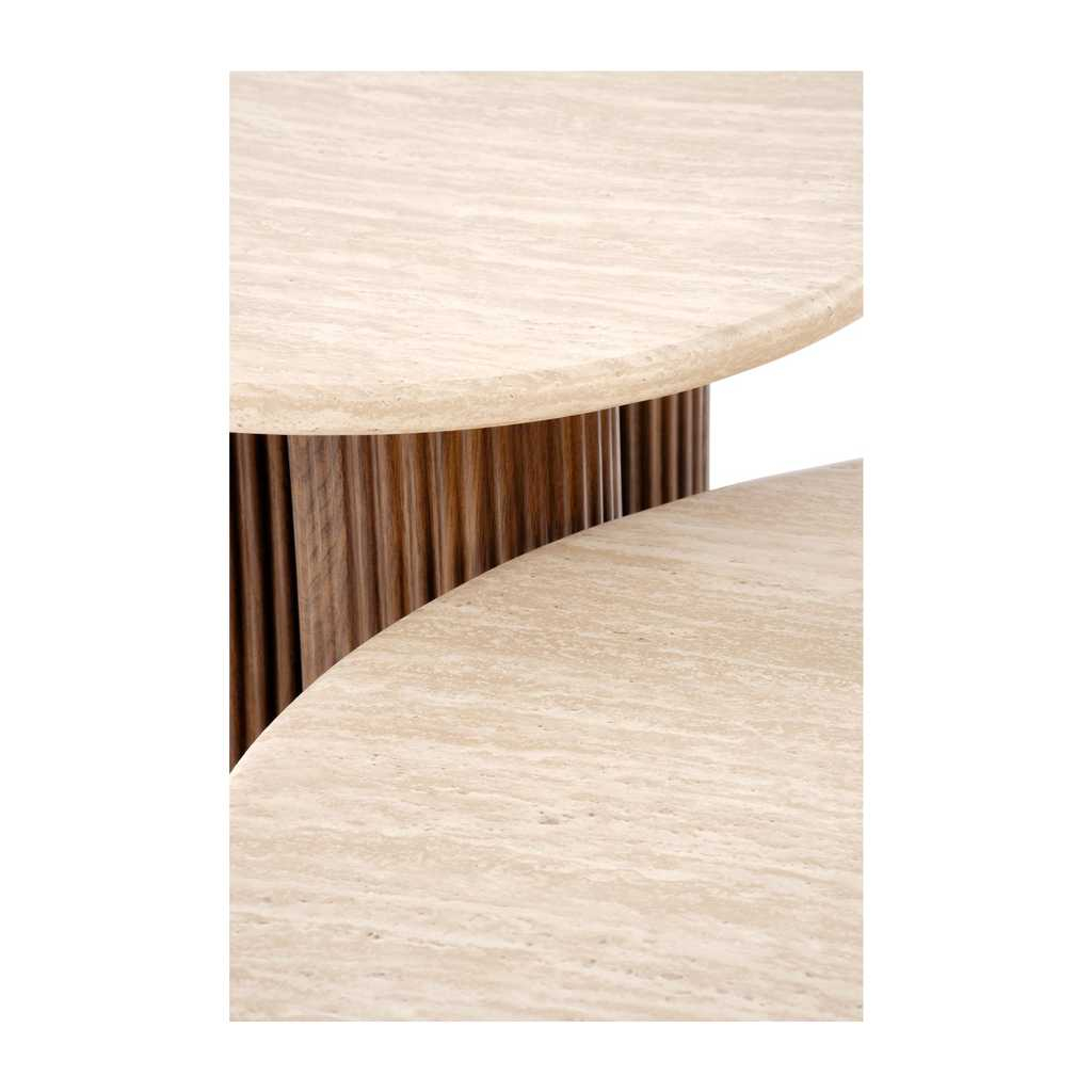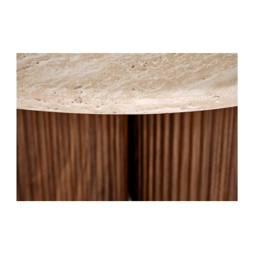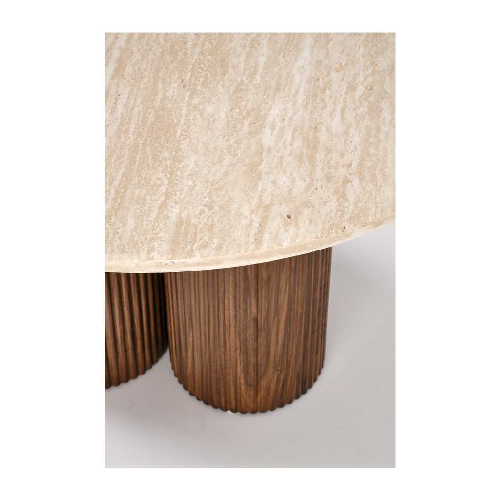Konferenční stolek Donovan je elegantním a praktickým doplňkem do každého obývacího pokoje či kanceláře. Jeho originální kruhový tvar horní desky nabídne dostatek prostoru pro odložení nápojů, knih či dekorací. Díky použití dřeva na desce i podnoži působí stolek příjemně teplým a přírodním dojmem, který snadno zapadne do různých stylů interiéru.