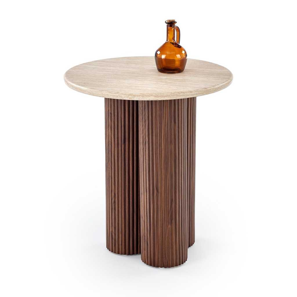 Konferenční stolek Donovan S zaujme svým originálním designem a kvalitním provedením ze dřeva. Díky kompaktním rozměrům je ideálním doplňkem do menších prostor, kde poskytuje dostatek místa pro odložení nápojů, dekorací nebo knih. Kruhový tvar horní desky podtrhuje jeho styl a vnáší do interiéru příjemnou harmonii. Tento stolek promění každý obývací pokoj či pracovni na útulnější a elegantnější místo.
