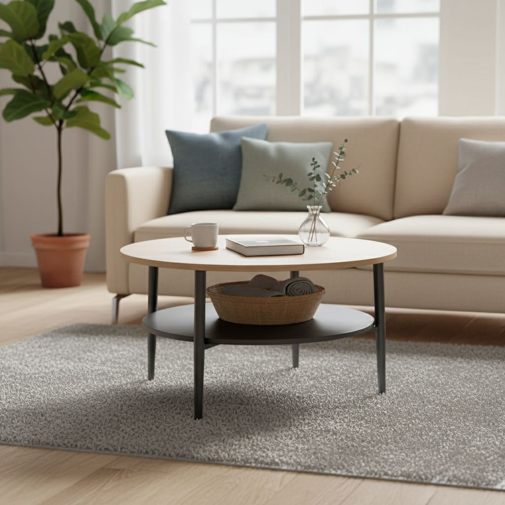 Svým kruhovým tvarem se hodí např. k rohové sedačce nebo mezi několik pohodlných křesel.