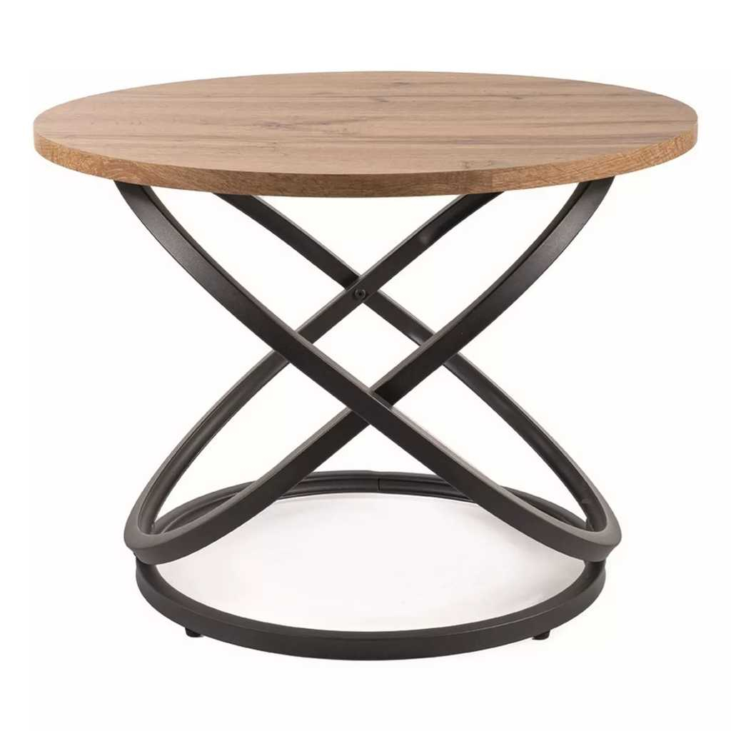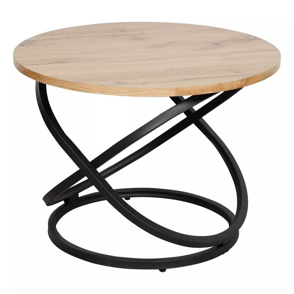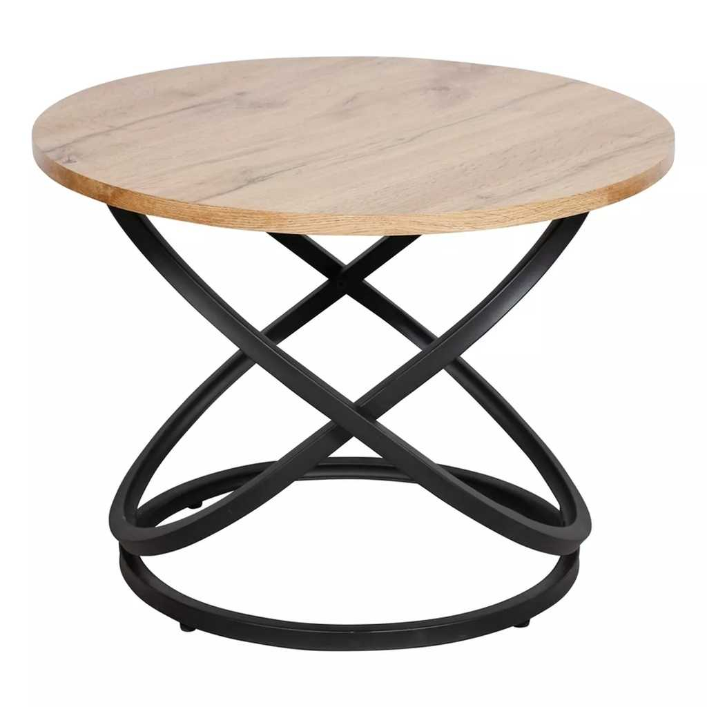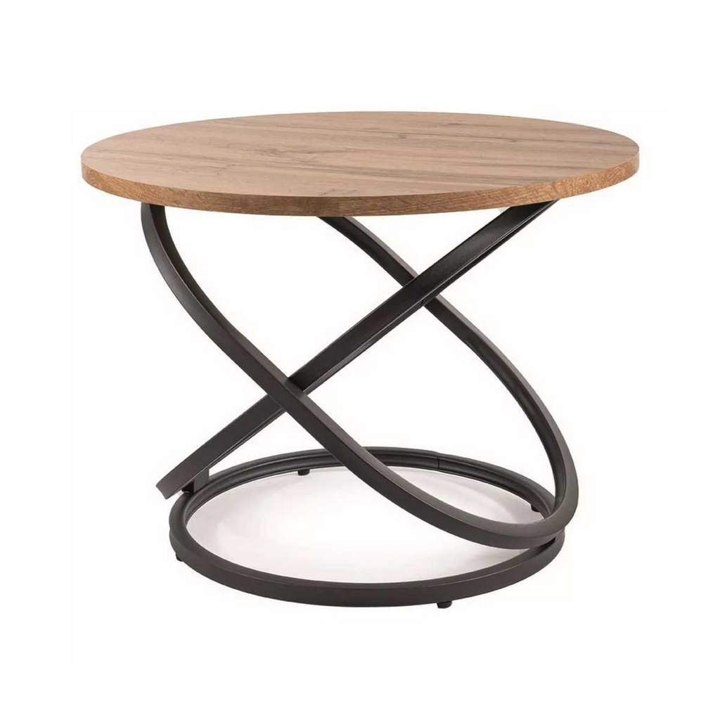 Jeho kulatá deska z dýhovaného MDF nabízí přirozený vzhled dřeva, který krásně kontrastuje s výraznou kovovou podnoží. Tato podnož má elegantně propletený tvar, který dodává stolku dynamiku a pocit pohybu, zatímco zůstává stabilní a pevný. Nosnost 20 kg je ideální pro dekorace, tiskoviny nebo drobné občerstvení.