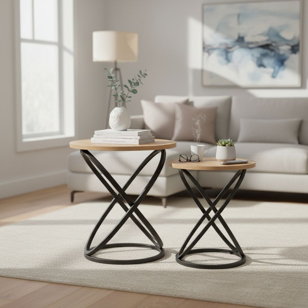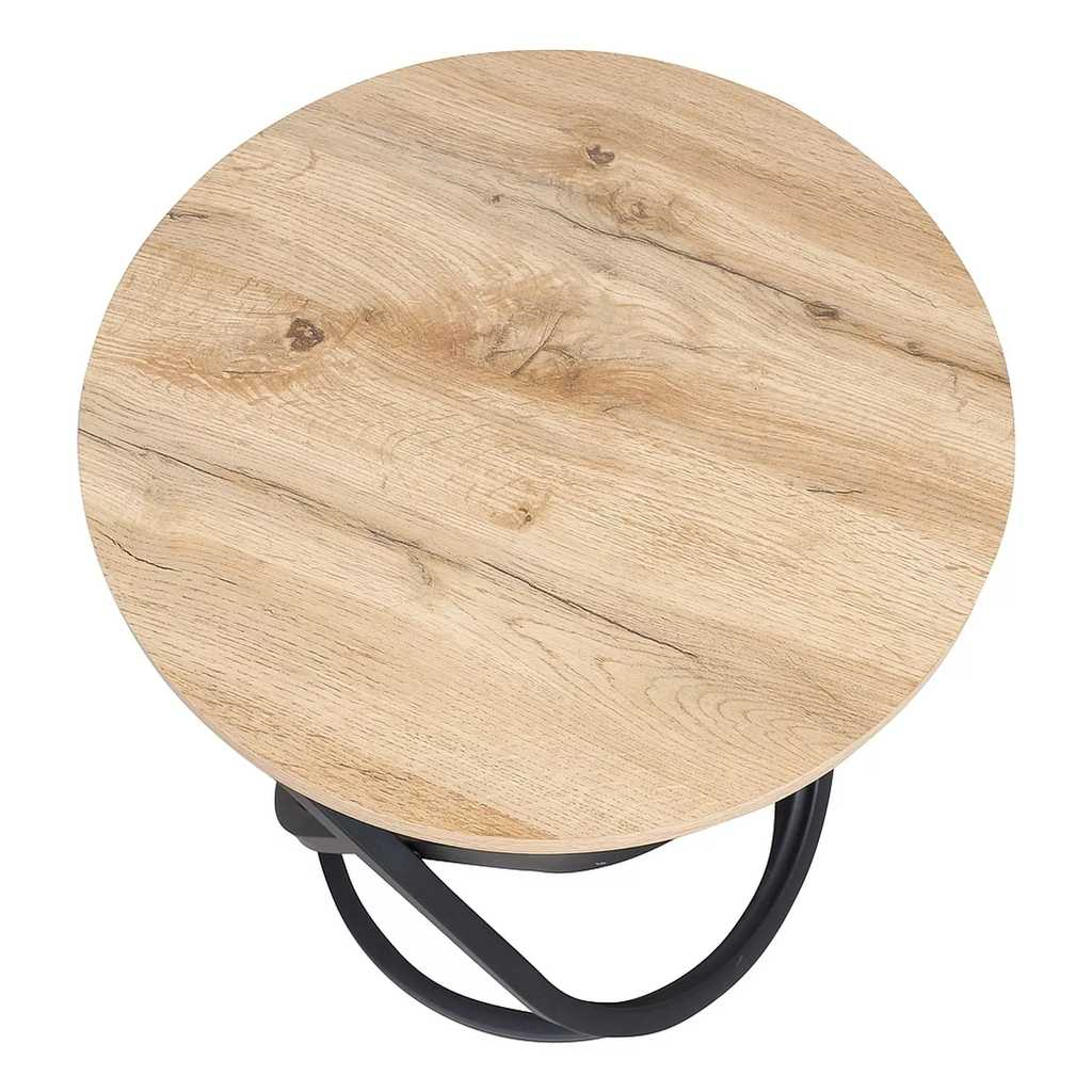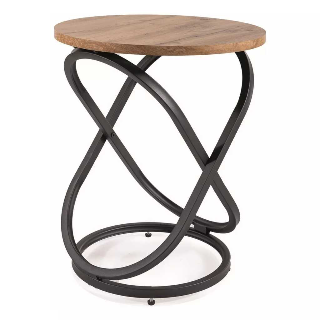 Jeho kulatá deska z dýhovaného MDF nabízí přirozený vzhled dřeva, který krásně kontrastuje s výraznou kovovou podnoží. Tato podnož má elegantně propletený tvar, který dodává stolku dynamiku a pocit pohybu, zatímco zůstává stabilní a pevný. Nosnost 20 kg je ideální pro dekorace, tiskoviny nebo drobné občerstvení.