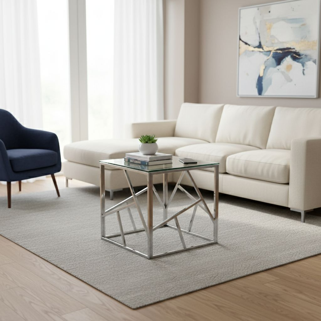 Konferenční stolek Escada čtvercový, čirá / stříbrná