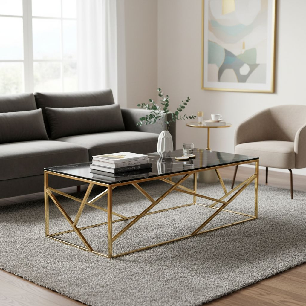 Konferenční stolek Escada II - obdélník, černý mramor / zlatá