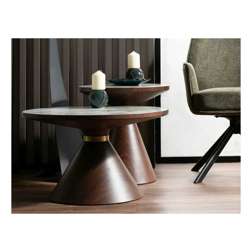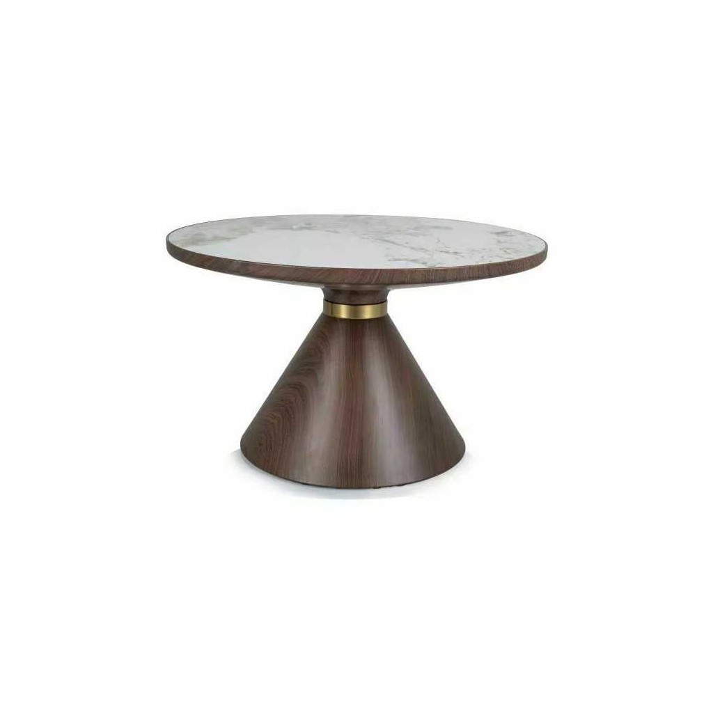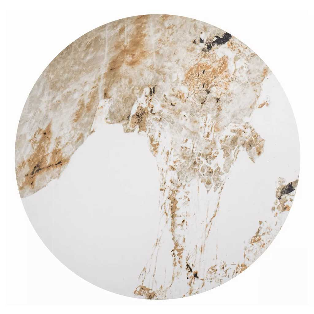 Jeho kulatá deska o průměru 70 cm je z keramiky s dekorem mramoru. Ten dodává stolku jemný a přírodní vzhled, aniž by ztratil na odolnosti. Pochvalovat si budete také snadnou údržbu, při které si vystačíte s vlhkým hadříkem.