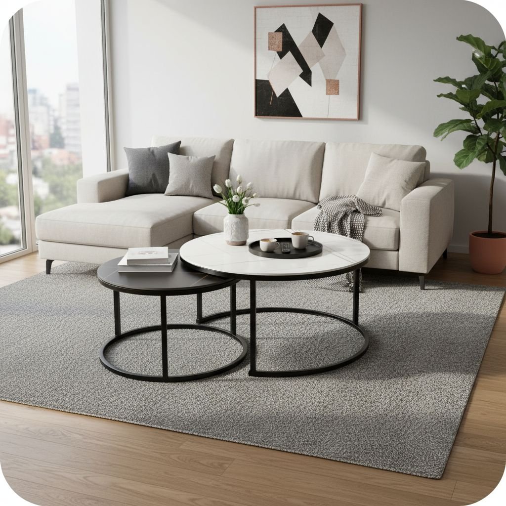 Ferrante B je sada hned 2 konferenčních stolků podobného designu, ale rozdílné velikosti. Ta jednak působí elegantně, jednak vám umožní menší stolek částečně nebo úplně zasunout pod větší a ušetřit tak místo.