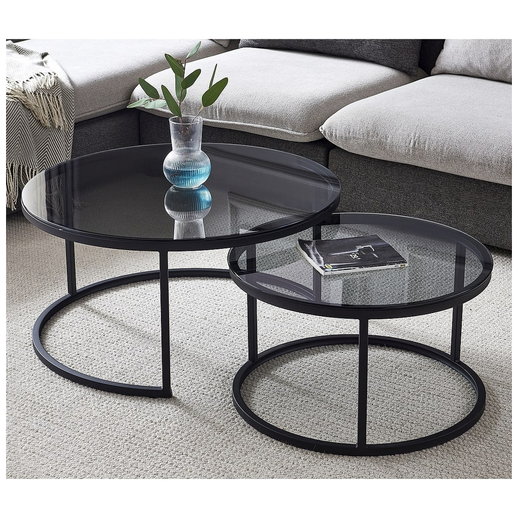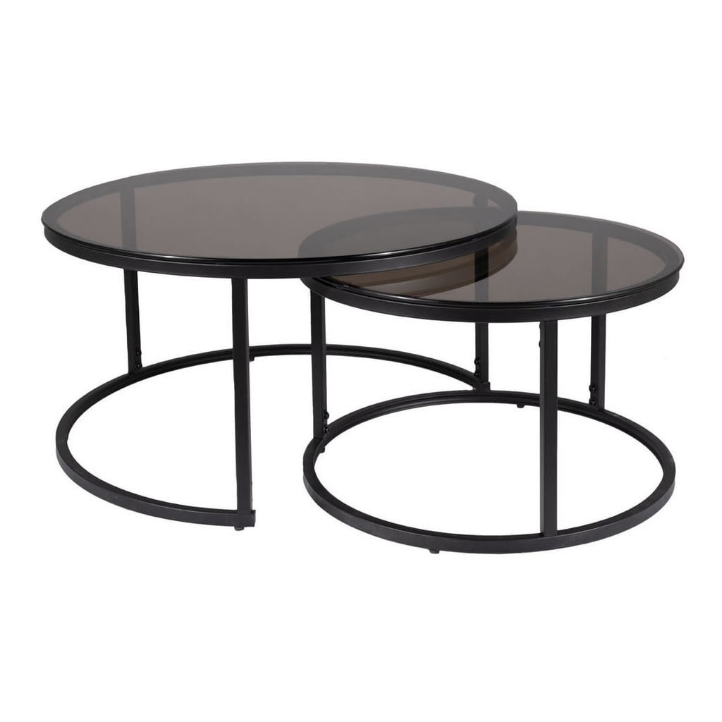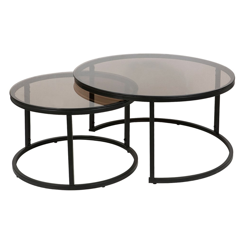Oba stolky mají kruhovou desku z tvrzeného skla, kterou nese černá kovová podnož. U této varianty mají oba stolky průhlednou kouřovou desku.