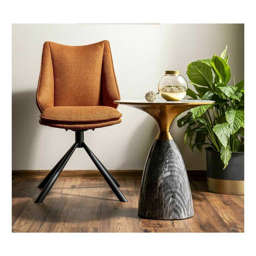 Jeho kulatá keramická deska vyniká svou odolností i stylovým vzhledem, který zaujme na první pohled. Velkou část stolku tvoří zlatá plocha, která stolek činí exkluzivně vyhlížejícím kouskem. Kovová noha s dekorem kamene s kruhovou základnou pak dodává stolku pevnost a moderní vzhled.