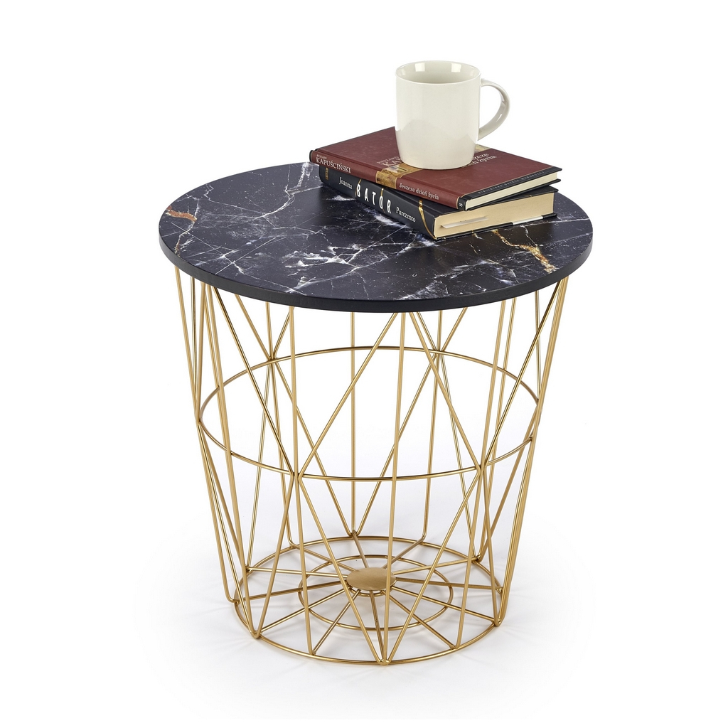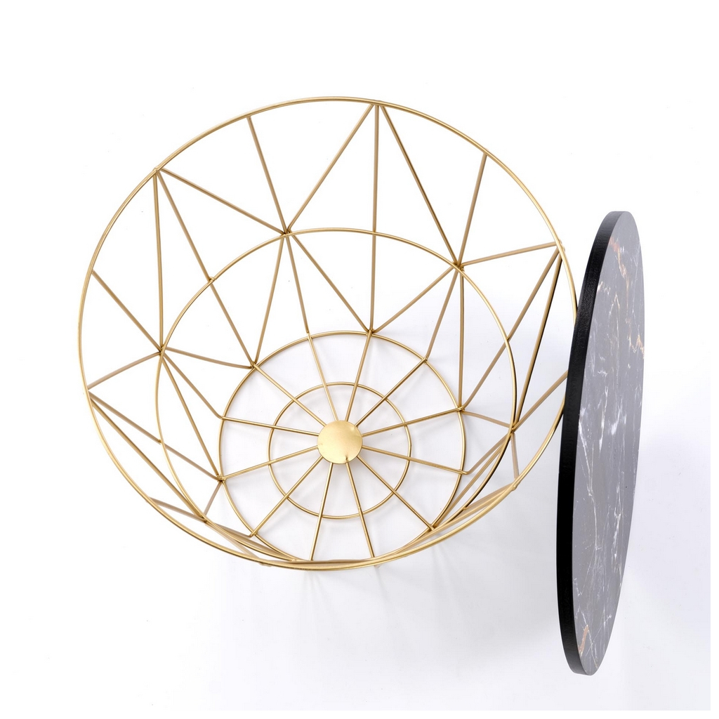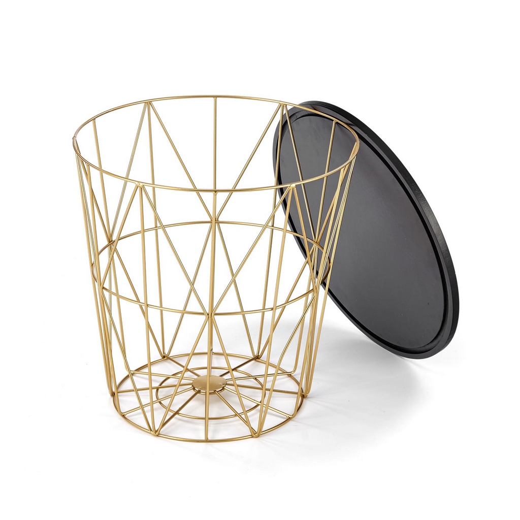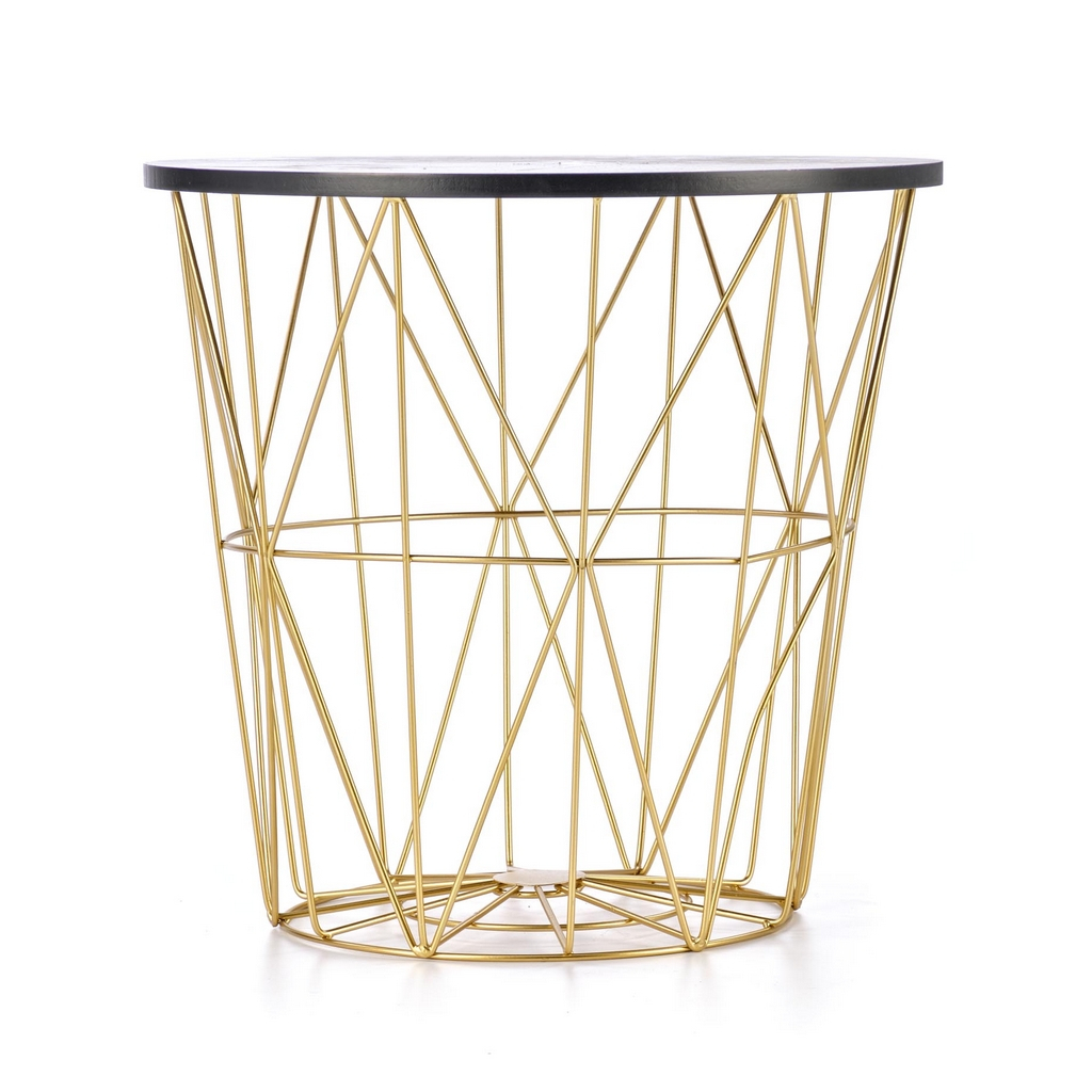 Podnož má pak podobu drátěného koše z pozlacené práškované ocele. Tento prostor využijete např. k uložení přikrývek nebo dekorativních předmětů.