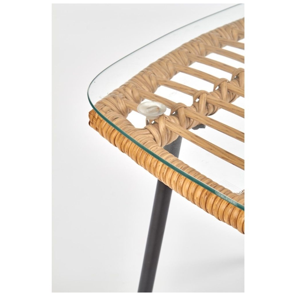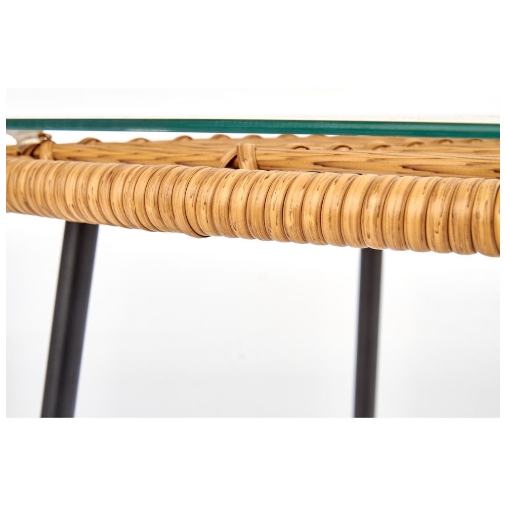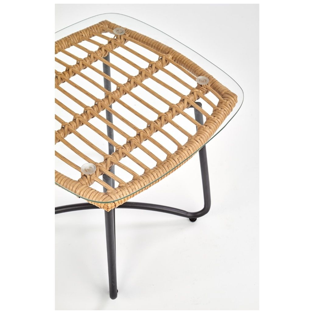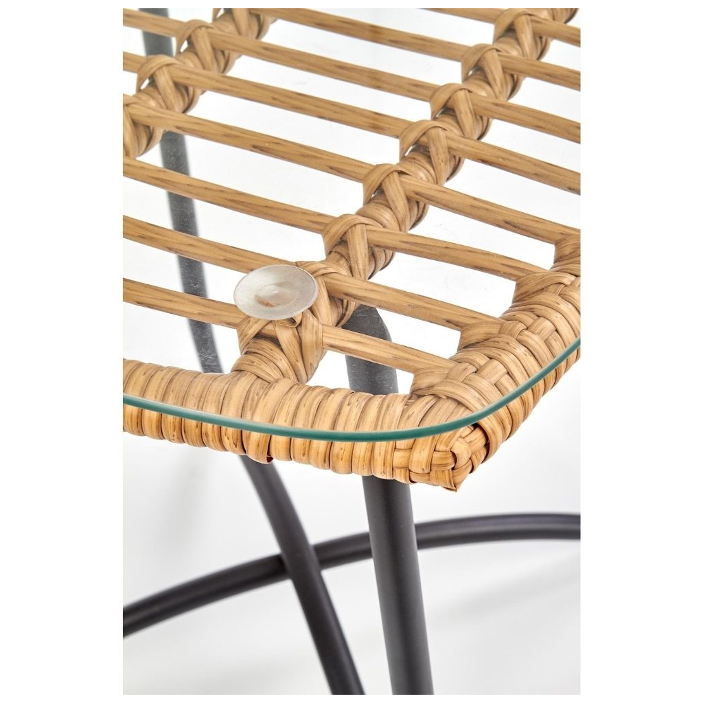 Deska je tvořena z umělého ratanu, na který je položená ještě skleněná vrchní část. Stabilitu zajišťují ocelové nožky doširoka umístěné tak, aby nedocházelo k převrhnutí.