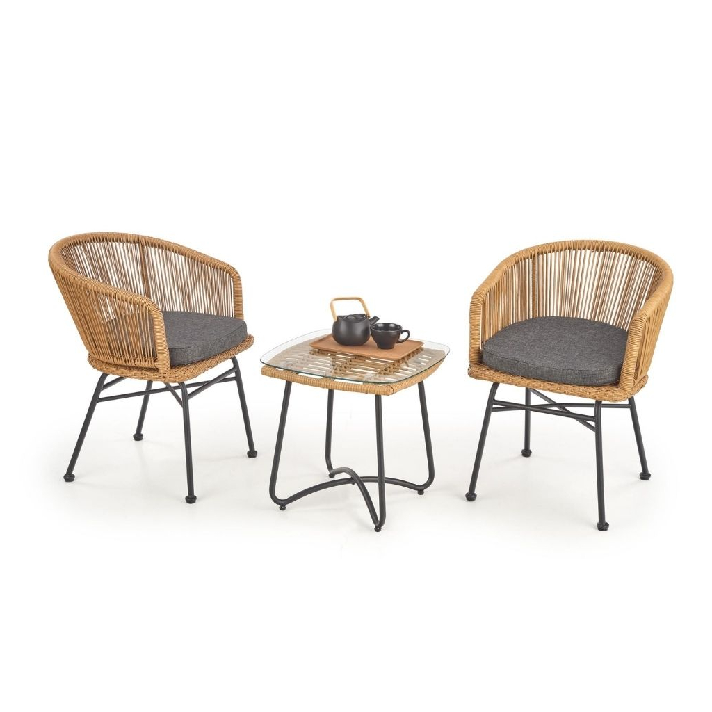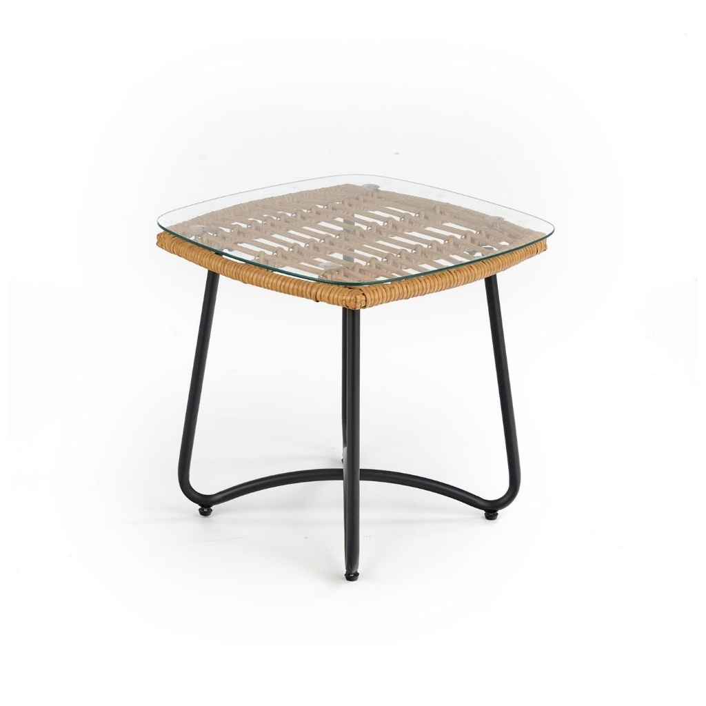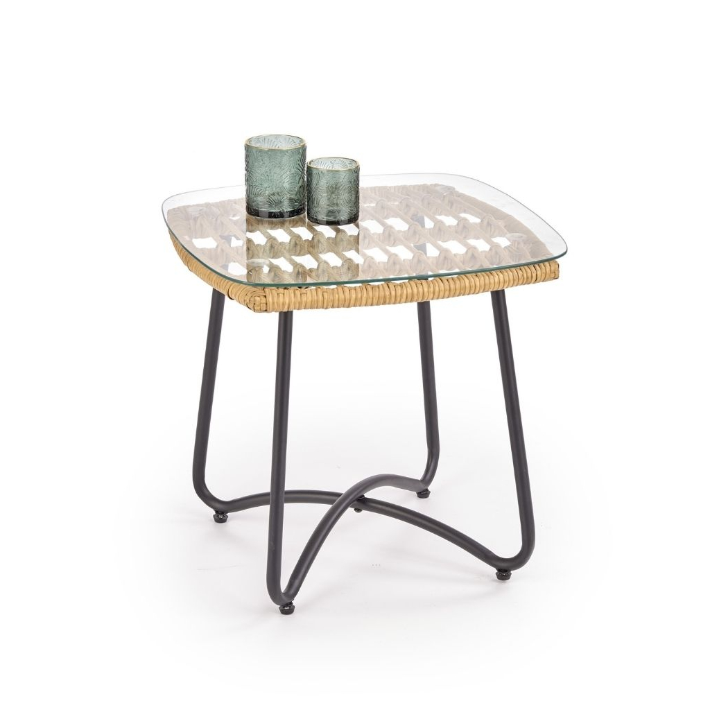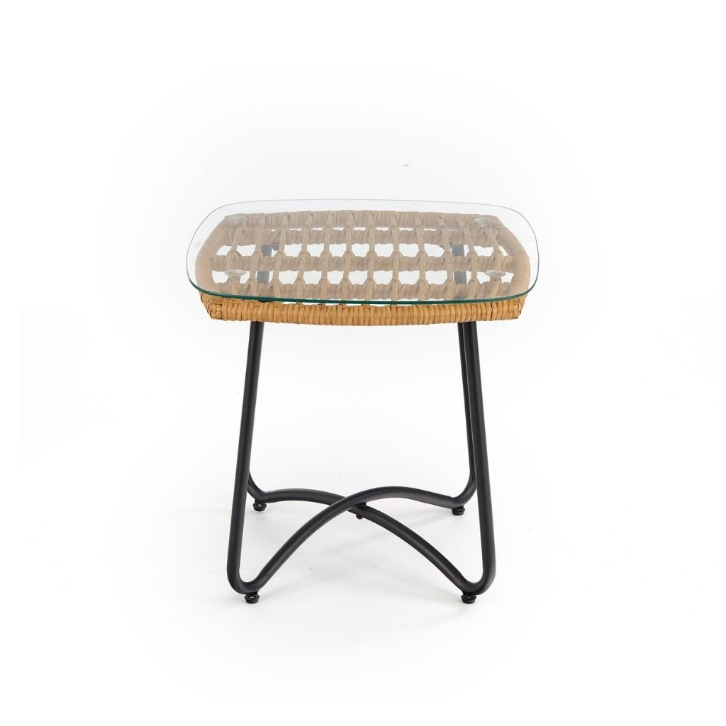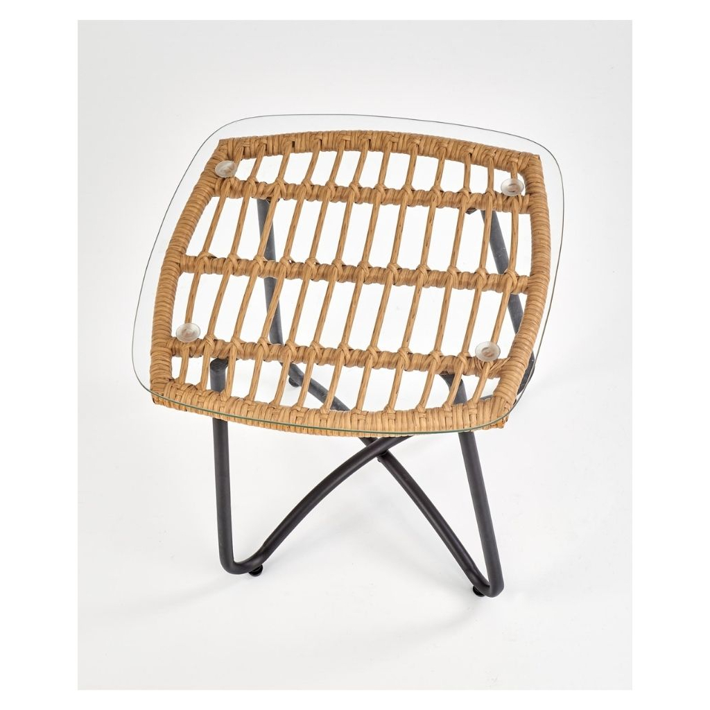 Deska je tvořena z umělého ratanu, na který je položená ještě skleněná vrchní část. Stabilitu zajišťují ocelové nožky doširoka umístěné tak, aby nedocházelo k převrhnutí.