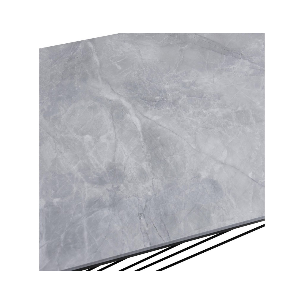 Industriální ráz kovu doplňuje deska ze slinutého kamene s dekorem mramoru. Výhodou je také snadná údržba stolku, při té si vystačíte s vlhkým hadříkem.