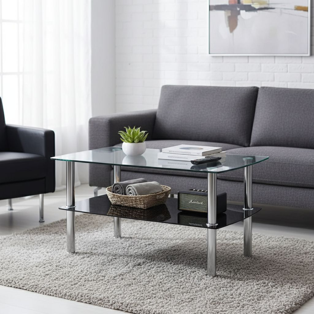 Konferenční stolek v moderním stylu s praktickým odkládacím prostorem.