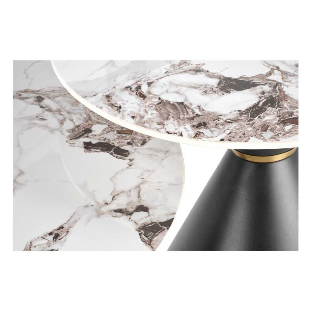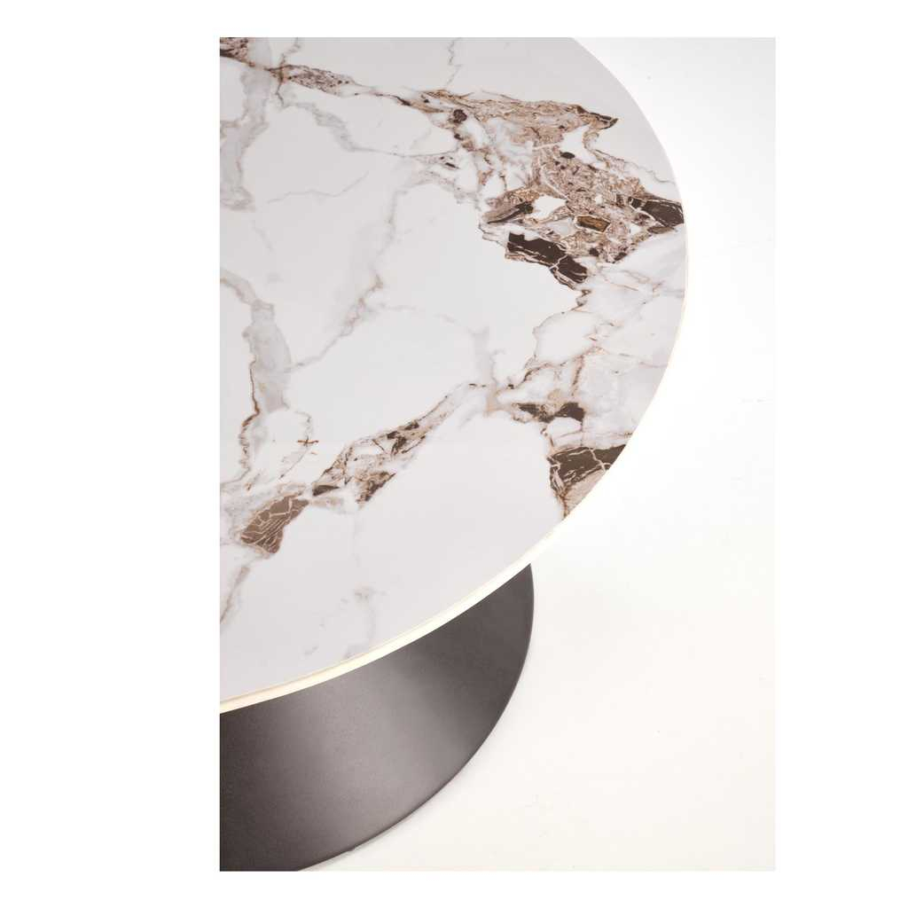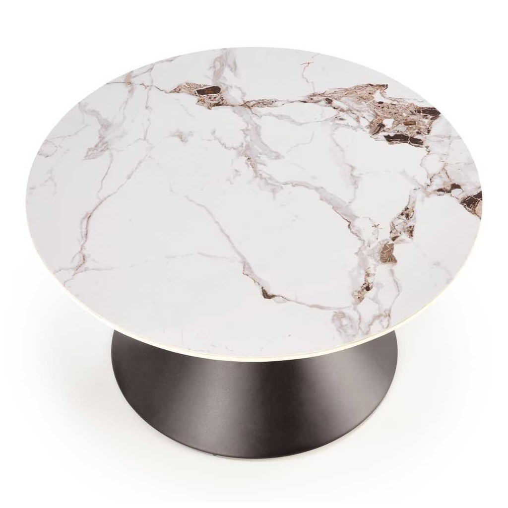 Dominantou stolku Jameson B je deska z umělého kamene (sintru) ve tvaru kruhu průměrem 80 cm. Materiál má podobné vlastnosti jako sklo nebo keramika a prosadí se v každé místnosti.