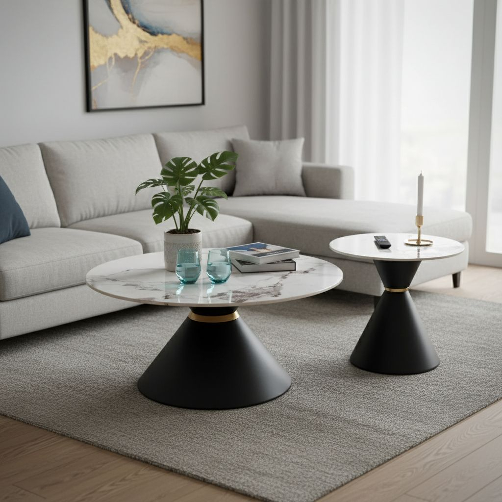 Nadčasový design, decentní kombinace barev a deska z umělého kamene – to jsou konferenční stolky Jameson v kostce.
