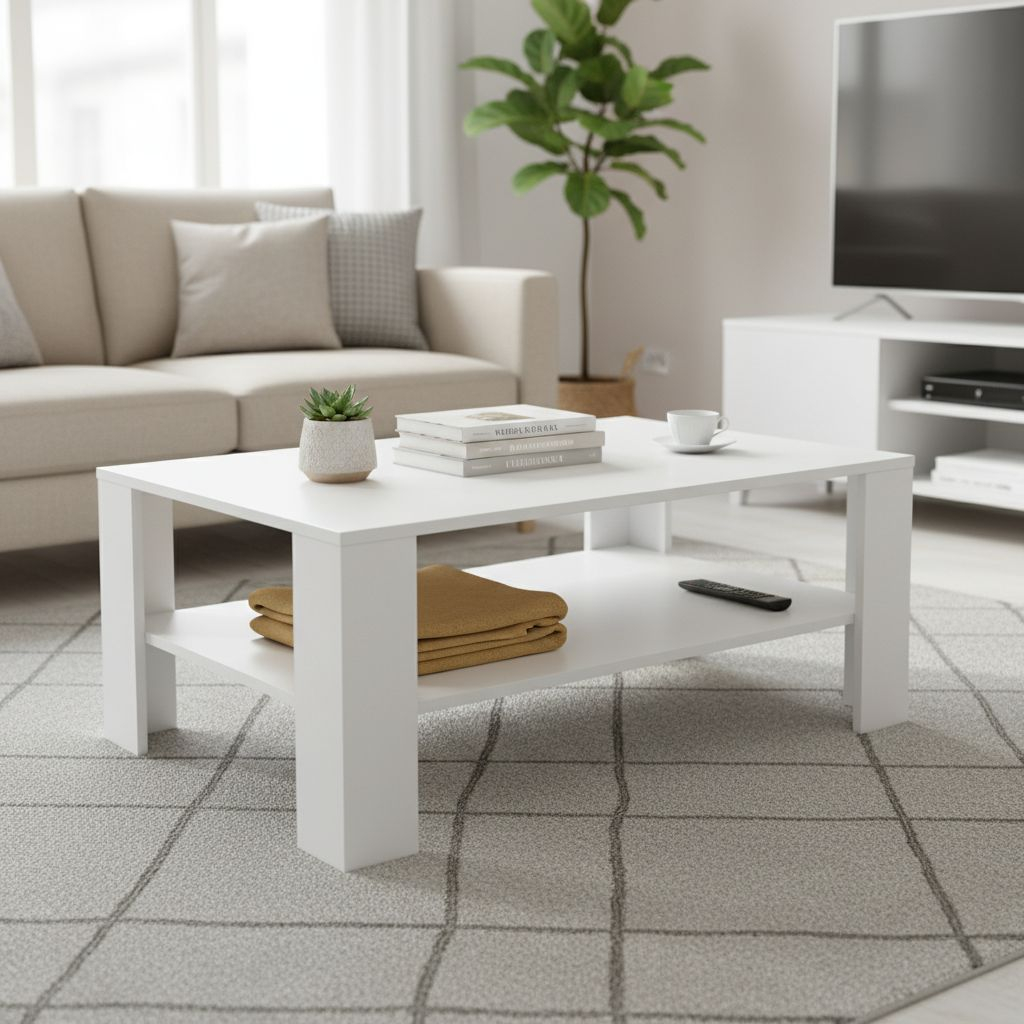 Skládá se z horní desky, podnože a odkládací police. Všechny části stolku jsou vyrobené z laminované MDF desky s tloušťkou 16 mm. Konstrukce váží 20,5 kg, a tak se s ním vcelku snadno manipuluje. Nožky navíc zespodu disponují prvky chránícími podlahu.