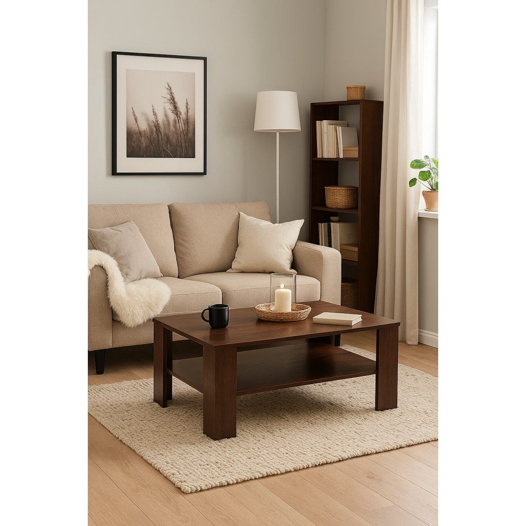 Jednoduchý, avšak velmi oblíbený dřevěný stolek Kvadro s obdélníkovou deskou se hodí do firemního lobby, kanceláře i do obývacího pokoje.