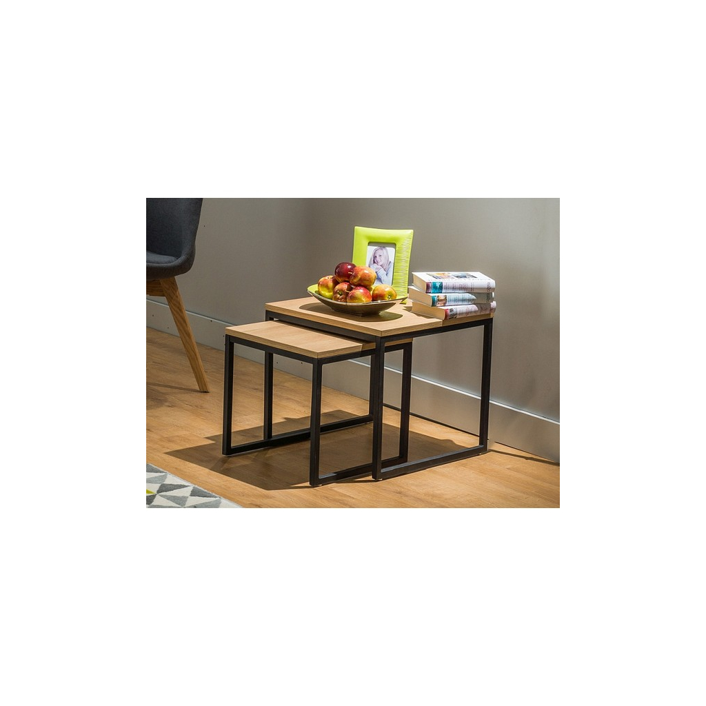 Horní deska vyrobená z dřevovlákna a dýhy propůjčuje stolku hezký přírodní vzhled a pevnost. Decentním pojetím jej můžeme zařadit do nábytku skandinávského stylu.