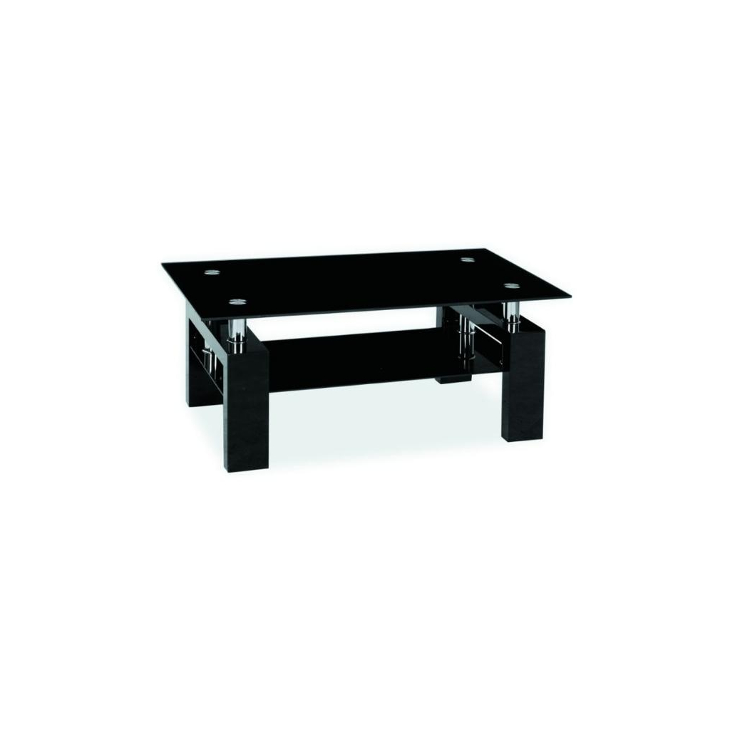 Tvrzené sklo dodává stolku vkus a vysoký lesk. Díky použitému materiálu se stolek navíc dobře čistí a je odolný vůči snadnému poškození. Pod vrchní deskou je i praktická polička na odložení věcí.