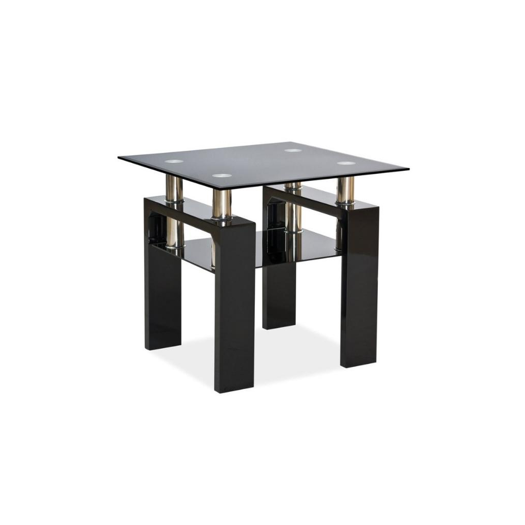Tvrzené sklo dodává stolku vkus a vysoký lesk. Díky použitému materiálu se stolek navíc dobře čistí a je odolný vůči snadnému poškození. Pod vrchní deskou je i praktická polička na odložení věcí.