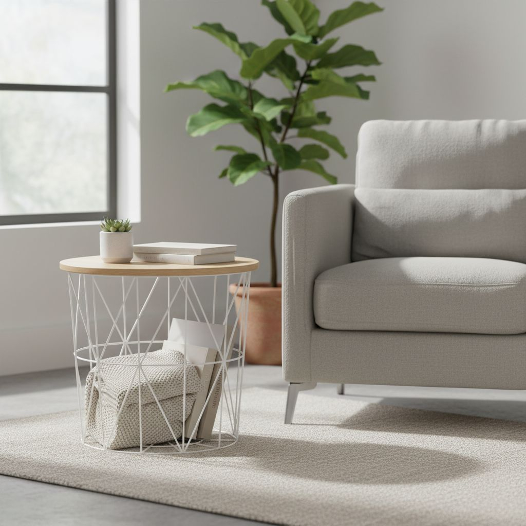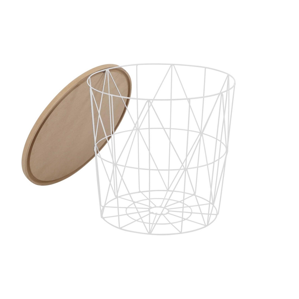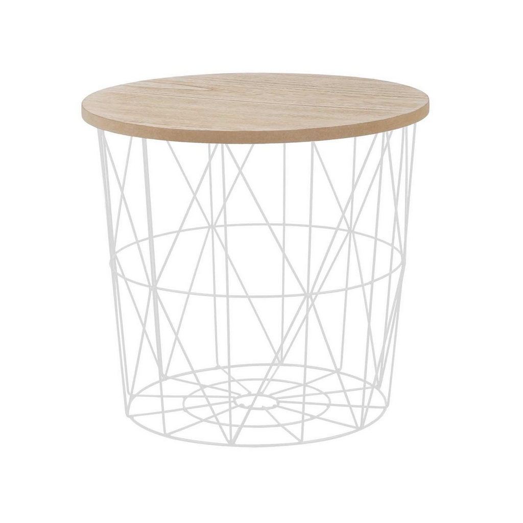 Konferenční stolek Mariffa je vzhledem ke svému originálnímu provedení skvělou volbou do nejrůznějších designových prostorů, restaurací či kaváren. Deska tohoto kulatého stolu s průměrem 42 cm je vyrobena z dřevovláknitého MDF materiálu v dekoru smrk. Jelikož je odnímatelná, nabízí ve své bílé ocelové konstrukci mnoho úložného prostoru například pro deky či polštáře. Ty tak budete mít vždy po ruce.