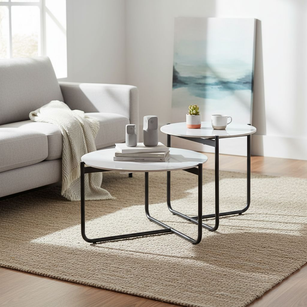 Štíhlý moderní design, vkusná kombinace barev a deska z umělého kamene – to jsou konferenční stolky Millia v kostce.