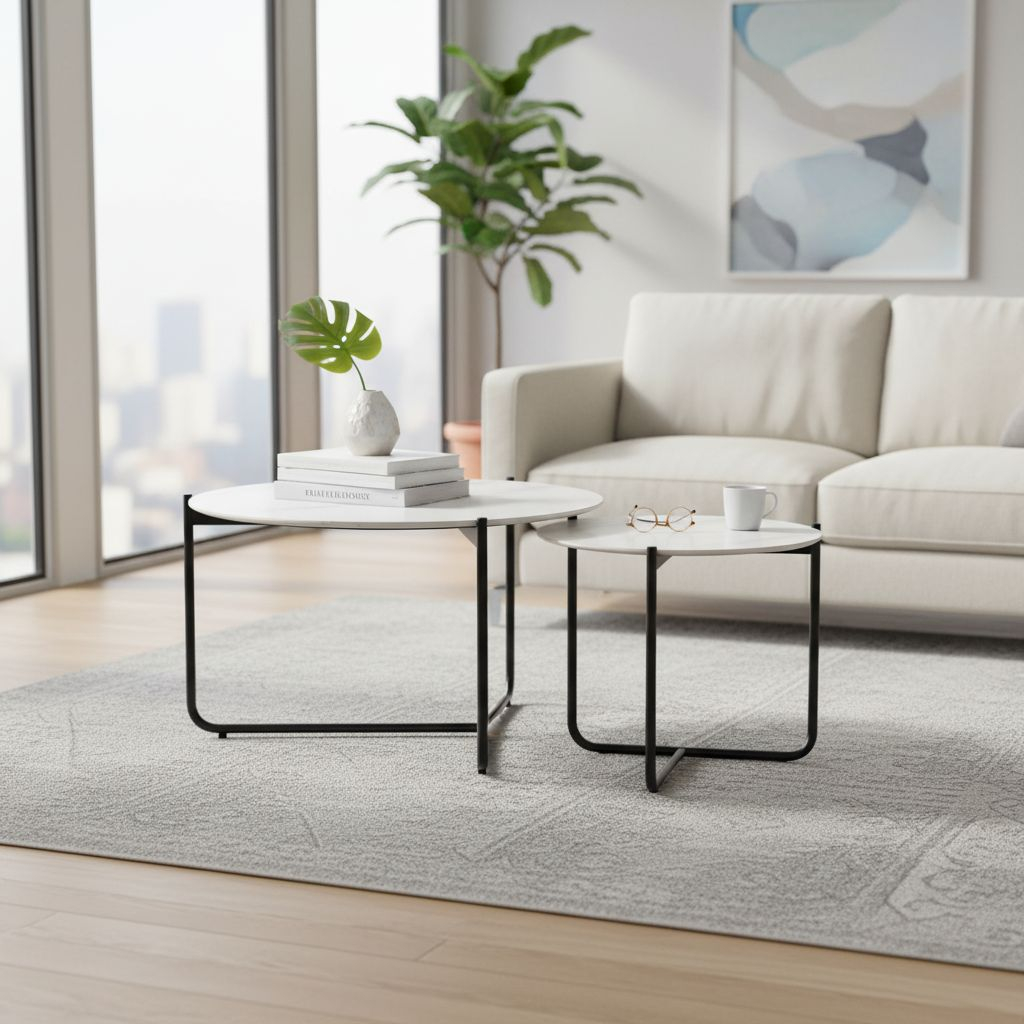 Štíhlý moderní design, vkusná kombinace barev a deska z umělého kamene – to jsou konferenční stolky Millia v kostce.