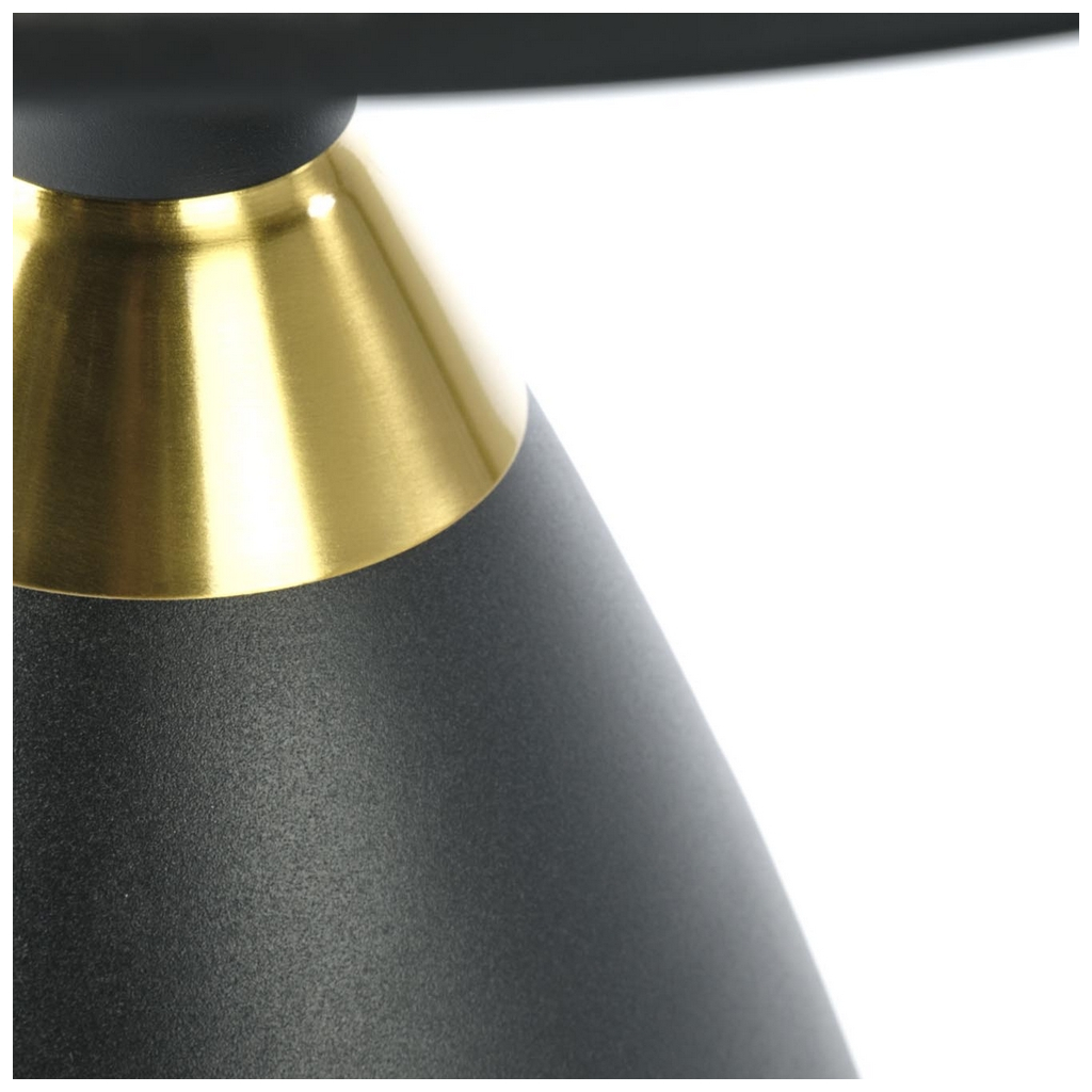 Ta svým vzhledem připomíná pohár s ozdobným zlatým prstencem. Desku drží ve výšce 52 cm, což je ideální k posezení na sedací soupravě nebo pohovce.