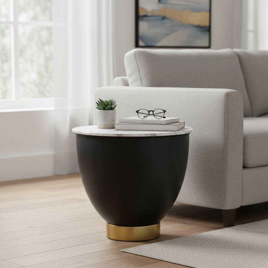 Jeho kulatá deska o průměru 48 cm je z keramiky s dekorem mramoru. Ten dodává stolku jemný a přírodní vzhled, aniž by ztratil na odolnosti. Pochvalovat si budete také snadnou údržbu, při které si vystačíte s vlhkým hadříkem.