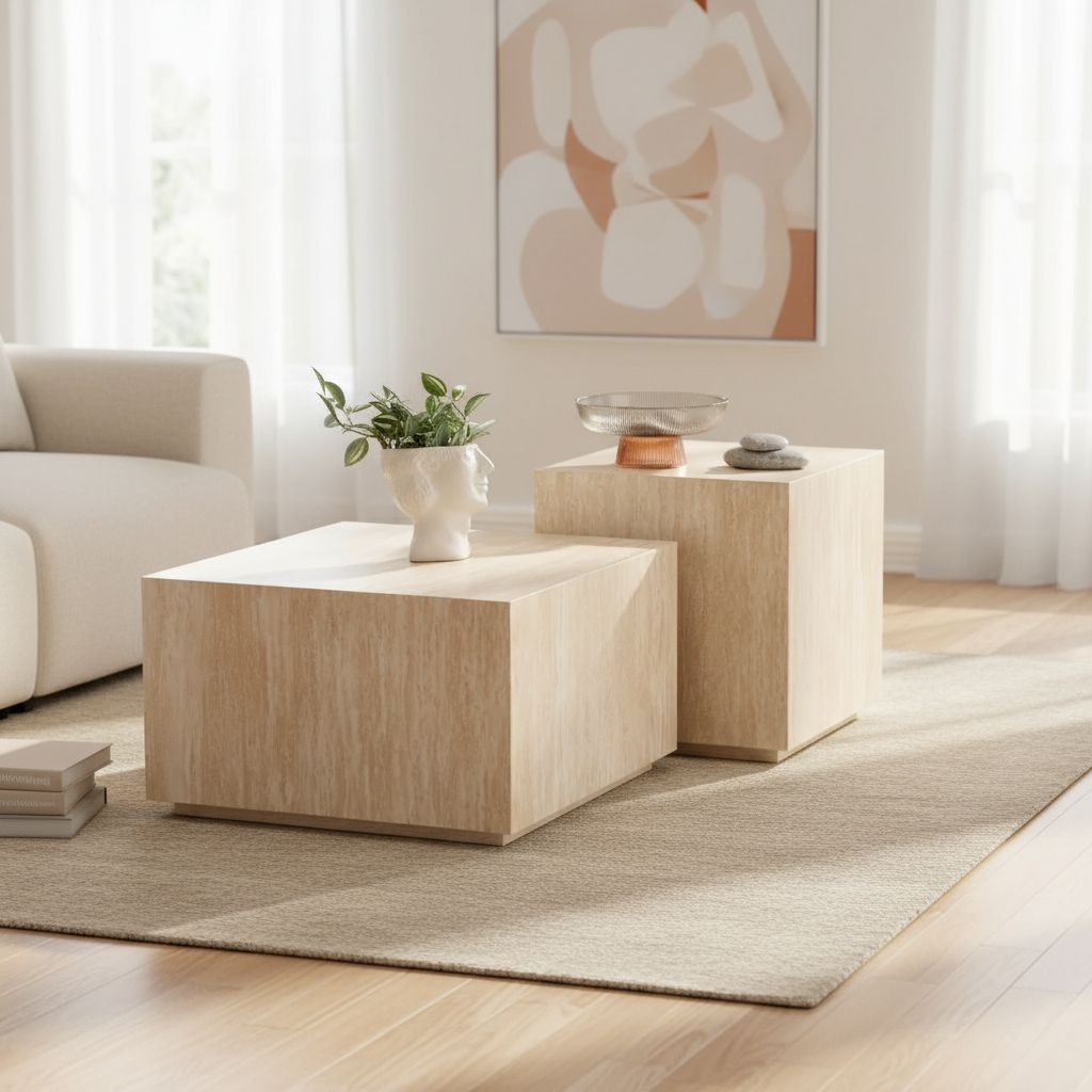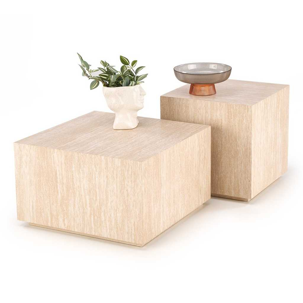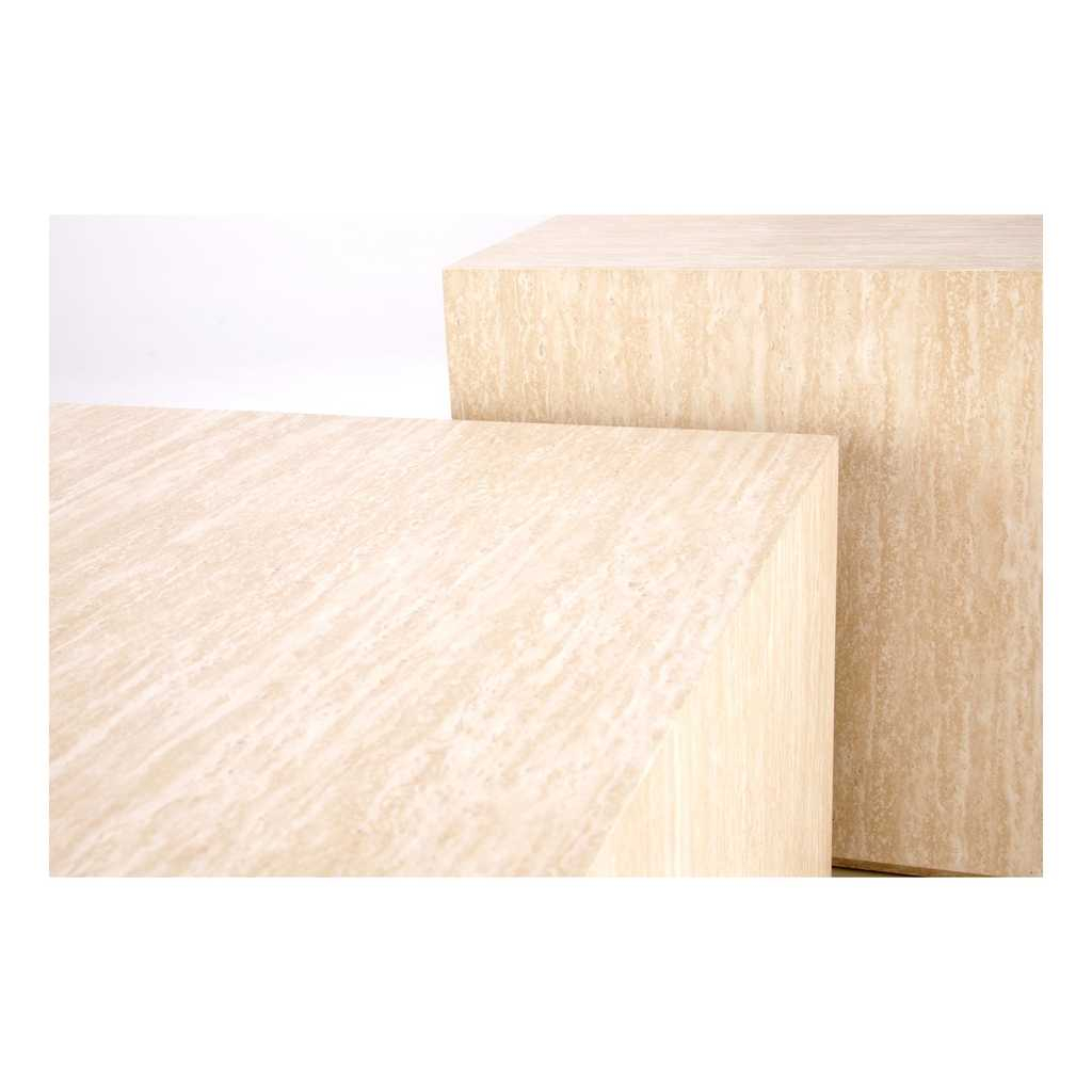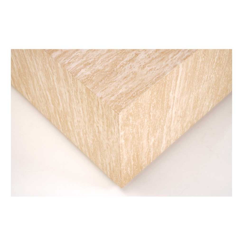 Vyrobený z dýhovaného MDF s dekorem travertinu, přináší do interiéru jemný nádech přírodního kamene, aniž by ztratil na praktičnosti.