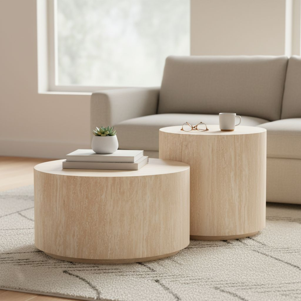 Vyrobený z dýhovaného MDF s dekorem travertinu, přináší do interiéru jemný nádech přírodního kamene, aniž by ztratil na praktičnosti.