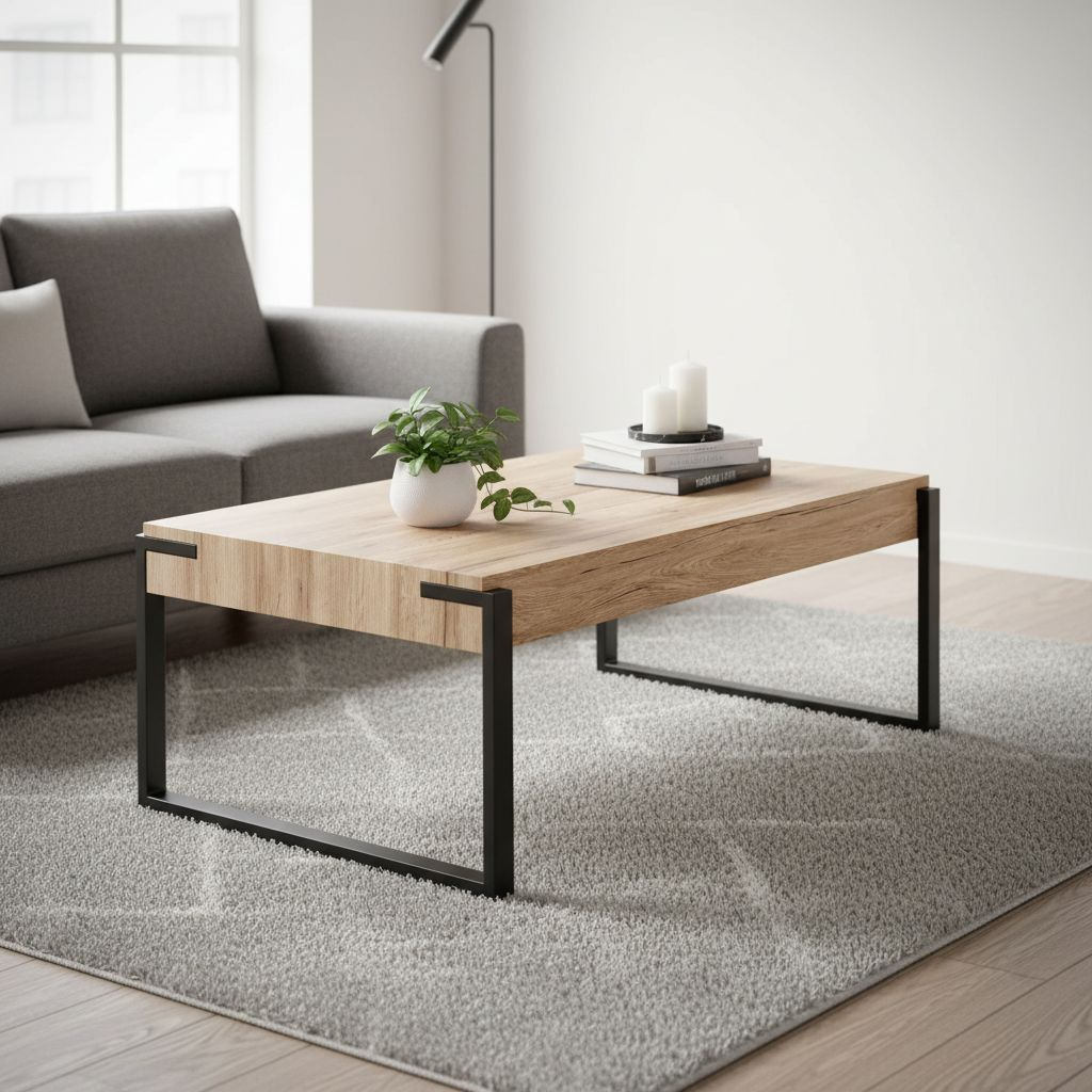 Stolek je vysoký 42 cm. Horní desku s rozměry 110 × 64 cm tvoří laminované MDF (dřevovlákno) v dezénu dubu San Remo. Jeho výrazná kresba navodí útulnou atmosféru.