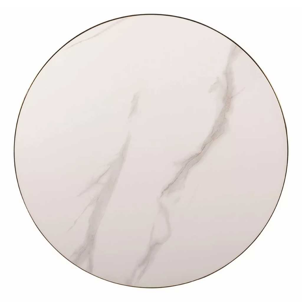 Kulatá deska stolku je z keramiky. To slibuje odolnost a dlouhou živostnost i při drsnějším zacházení. O efektní podívanou se mimo jiné stará dekor mramoru na porvchu desky.