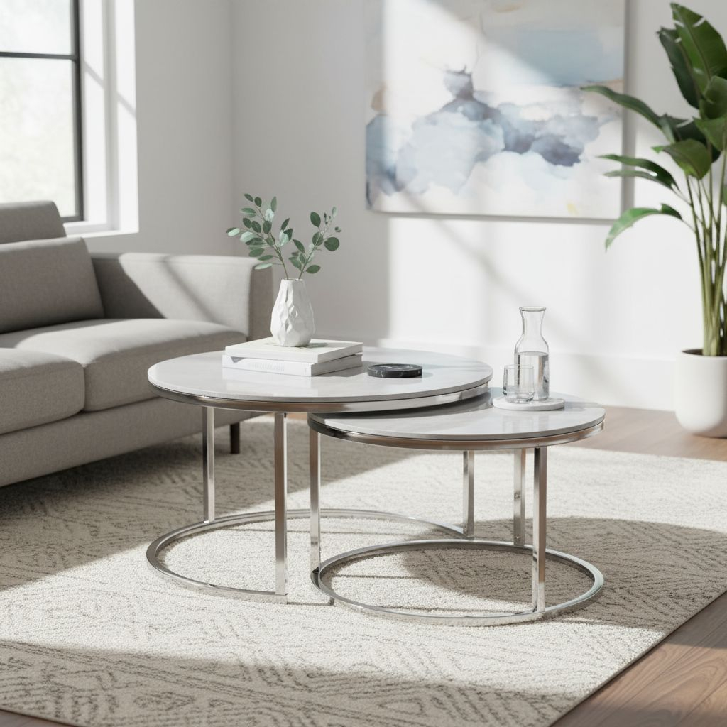 Menší stolek je navržen tak, aby se přesně vešel pod větší, což umožňuje uspořádání podle vašich potřeb. Tato chytrá vlastnost šetří místo, a přitom nabízí dodatečný odkládací prostor kdykoliv je potřeba.