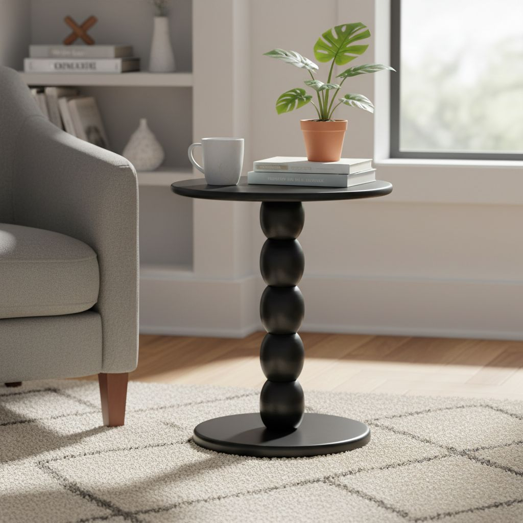 Deska má tvar kruhu o průměru 40 cm. Ve výšce 47 cm ji drží článkovaná noha – hlavní designový prvek celého stolku.
