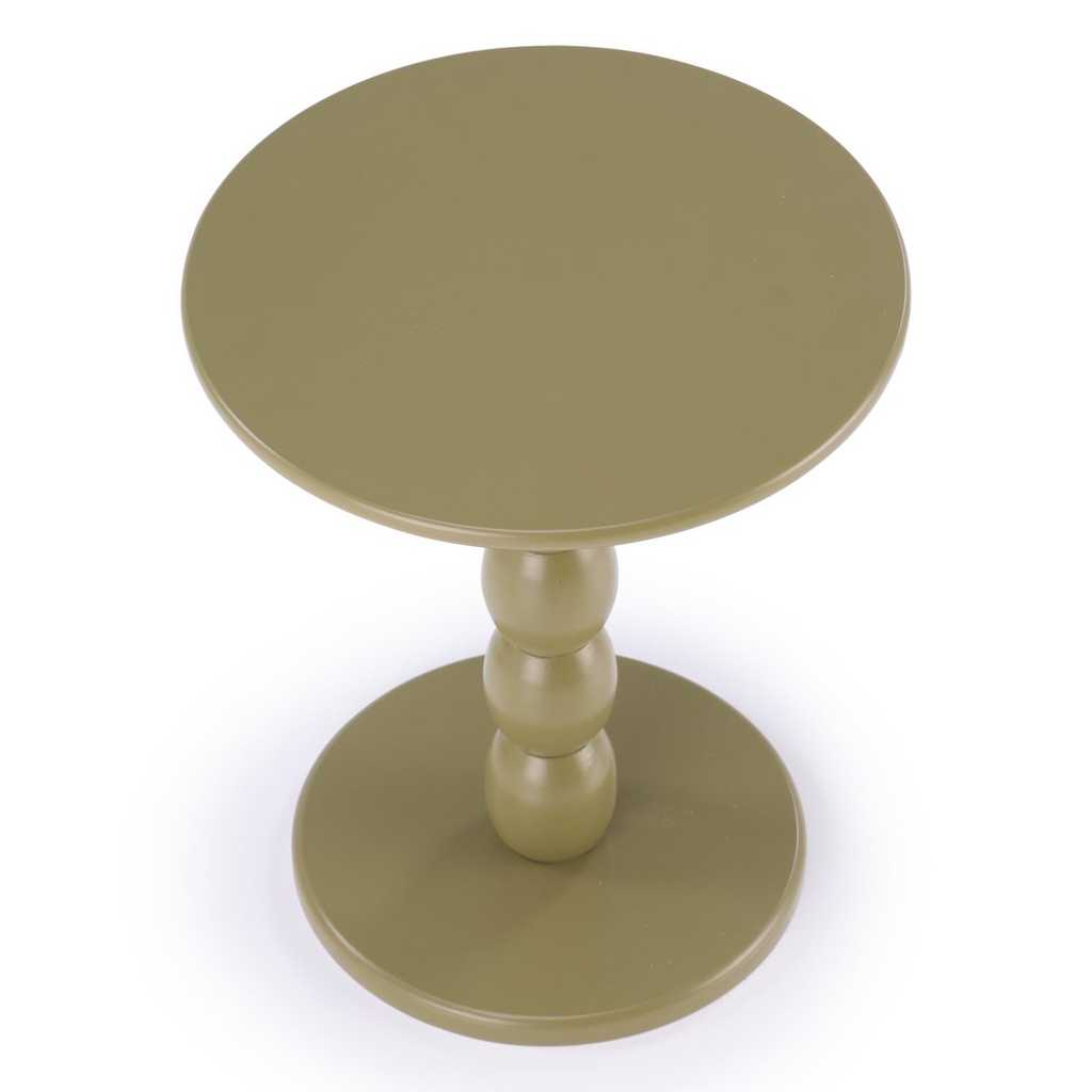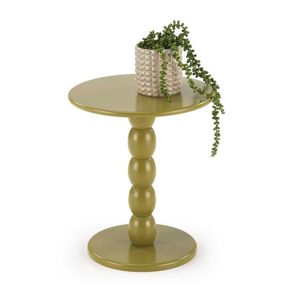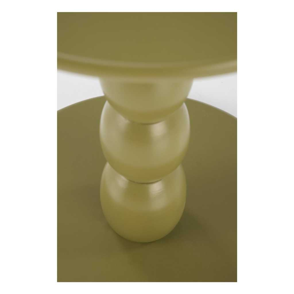 Deska má tvar kruhu o průměru 40 cm. Ve výšce 47 cm ji drží článkovaná noha – hlavní designový prvek celého stolku.