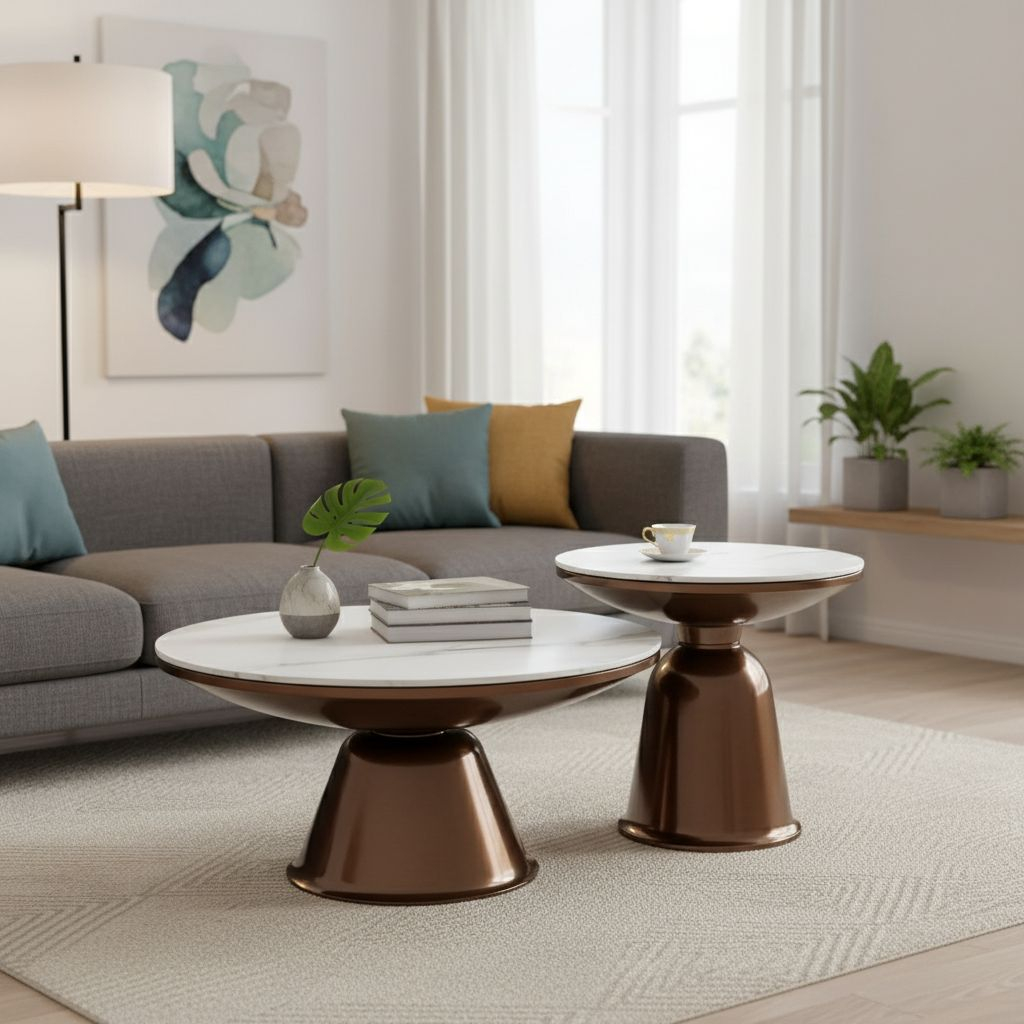 Konferenční stolek Rovigo, mramor / bronzová