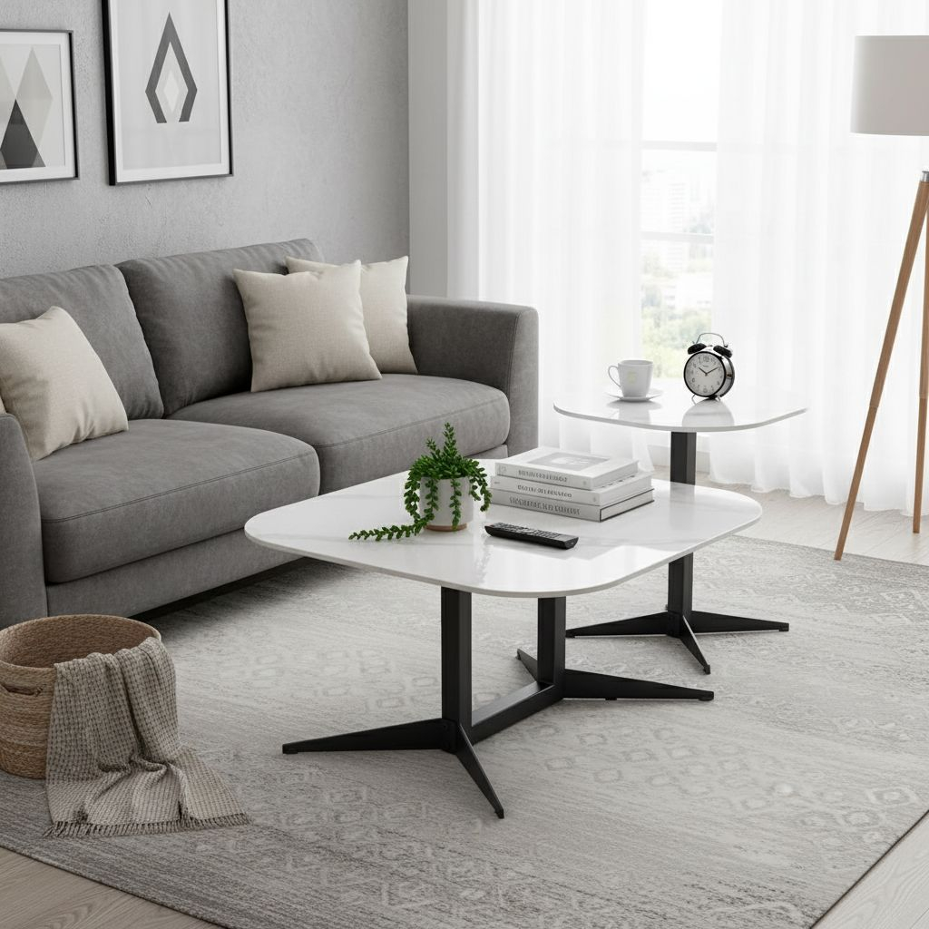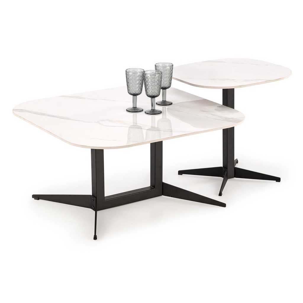 Nadčasový design, decentní kombinace barev a deska z umělého kamene – to jsou konferenční stolky Rowan v kostce.